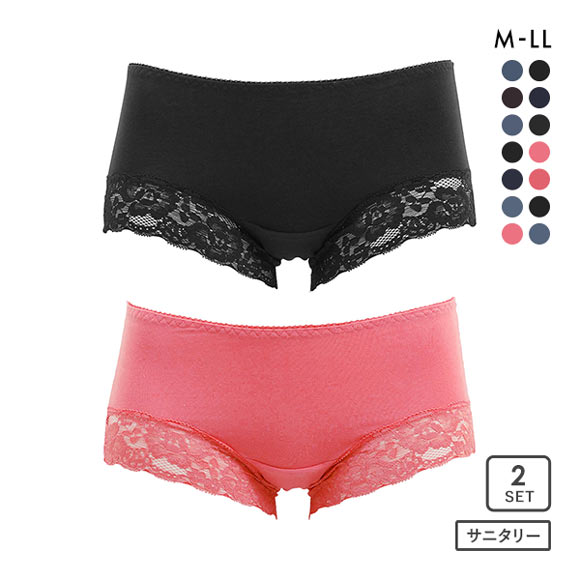 サニタリーショーツ 羽つきナプキン対応 2枚組 綿混 生理用 シンプル レース