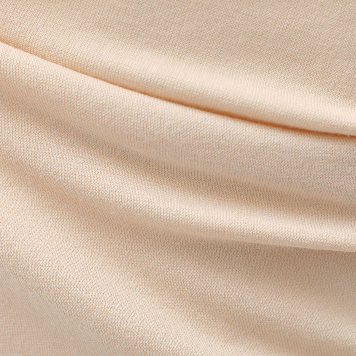 縦横に伸縮するやわらかな生地を使用。肌側は綿100%のため、素肌に優しくフィットします。サイドに縫い目がない丸胴編みのため、ごろつかずなめらかな着用感です♪