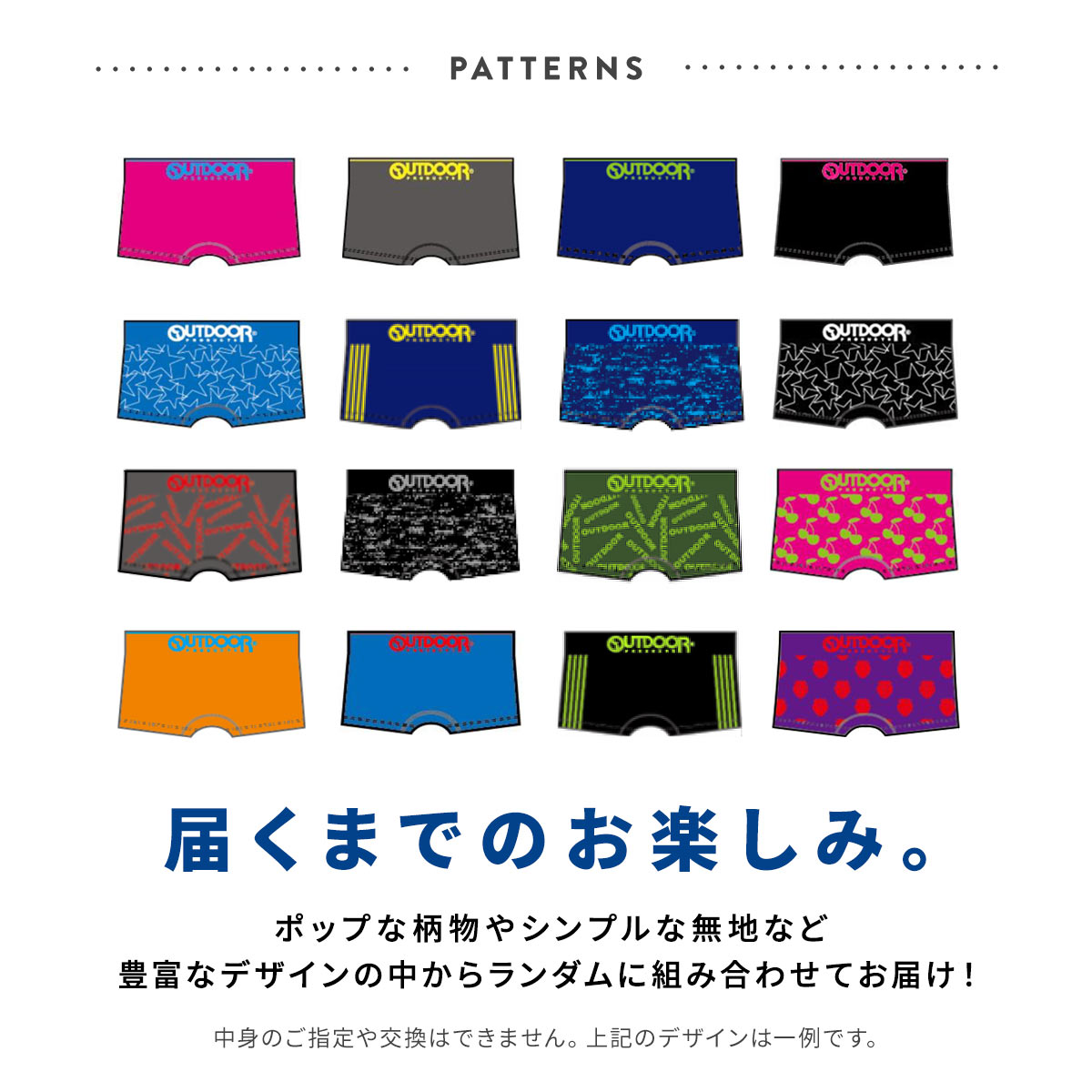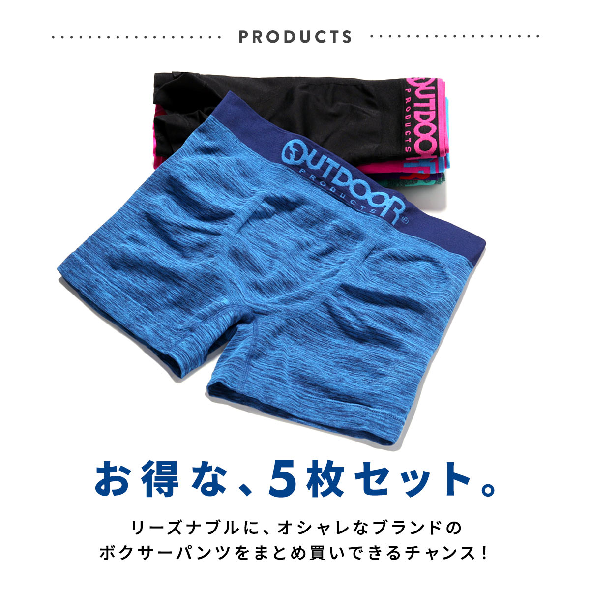 カラフルでポップなデザインが大人気のブランド「OUTDOOR PRODUCTS」の福袋です!中身は人気のシームレスボクサーパンツ5枚組!