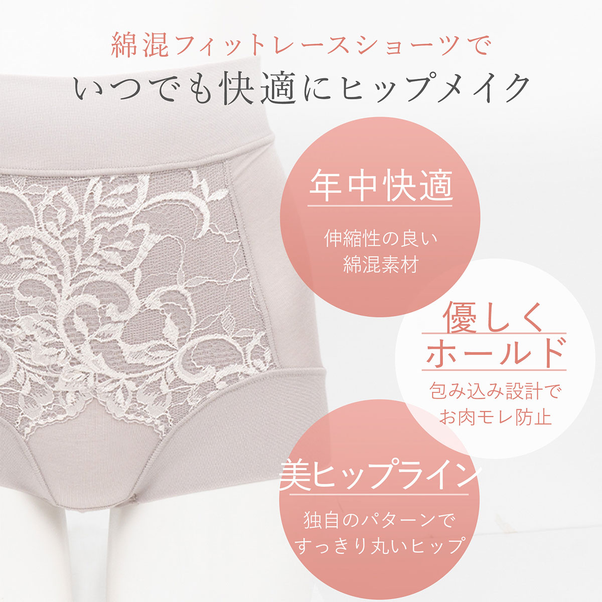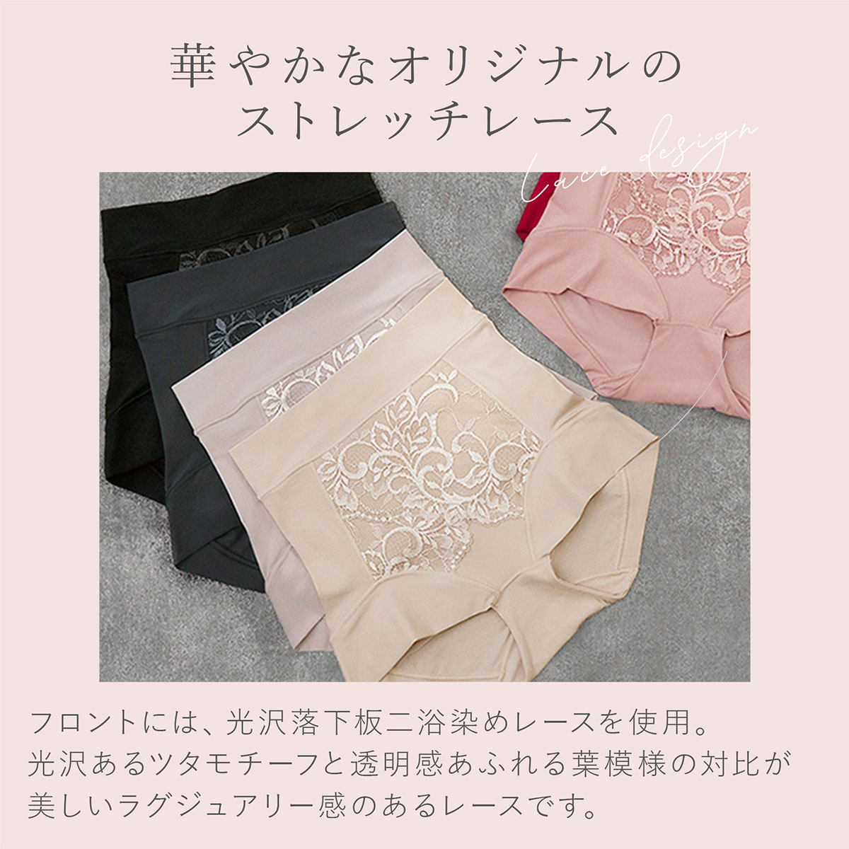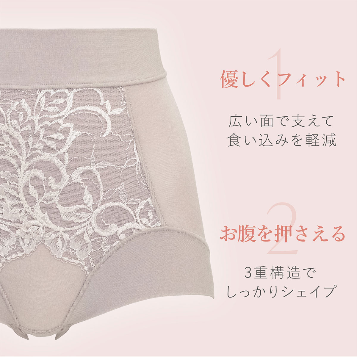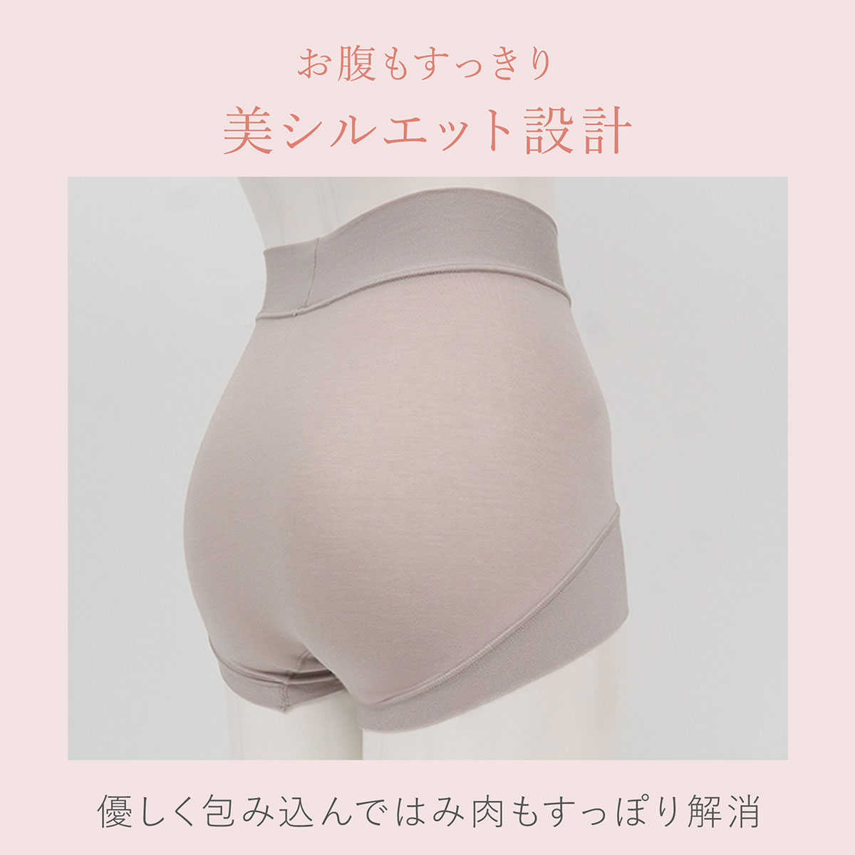 楽な着心地と立体パターンで、理想のヒップラインをメイクする補整ショーツです。重力による下垂や、お尻についてしまった段差・食い込み等のヒップの悪いクセをリセットしてくれる、ウエストからヒップまでをすっぽりと包み込む深ばきタイプです。