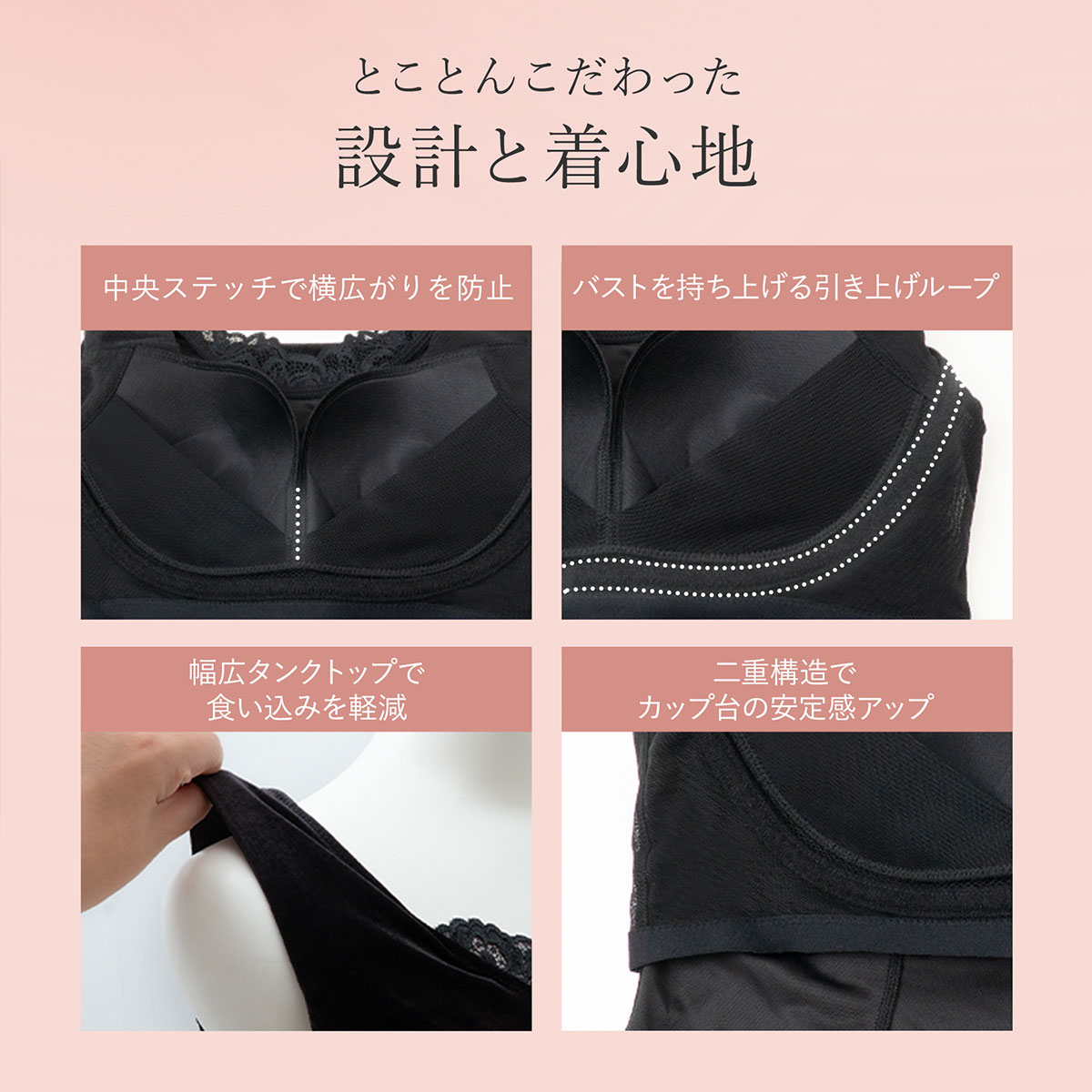 ブラデリスの育乳・補整のノウハウと技術を詰め込んだ、華やかベロアで高見え×立体美胸が叶う補整ブラトップです。