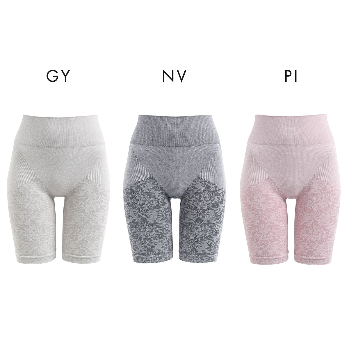 本気の補正力 コットンシェイパー 綿混成型 ロング ガードル 3分丈 M L LL 花柄ジャガード ボディメイク ヒップアップ ソフト補正(NV-ネイビー-M) SOLDOUT