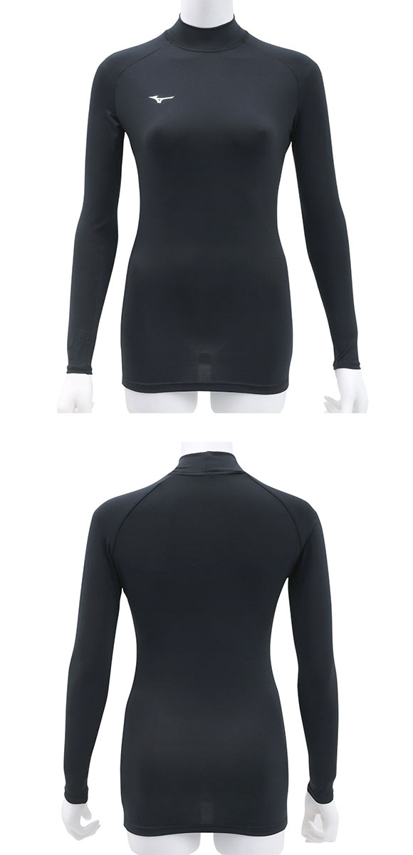 ミズノ MIZUNO バイオギア BIOGEAR シャツ レディース ハイネック 長袖 コンプレッション スポーツ(BK-ブラック-S)