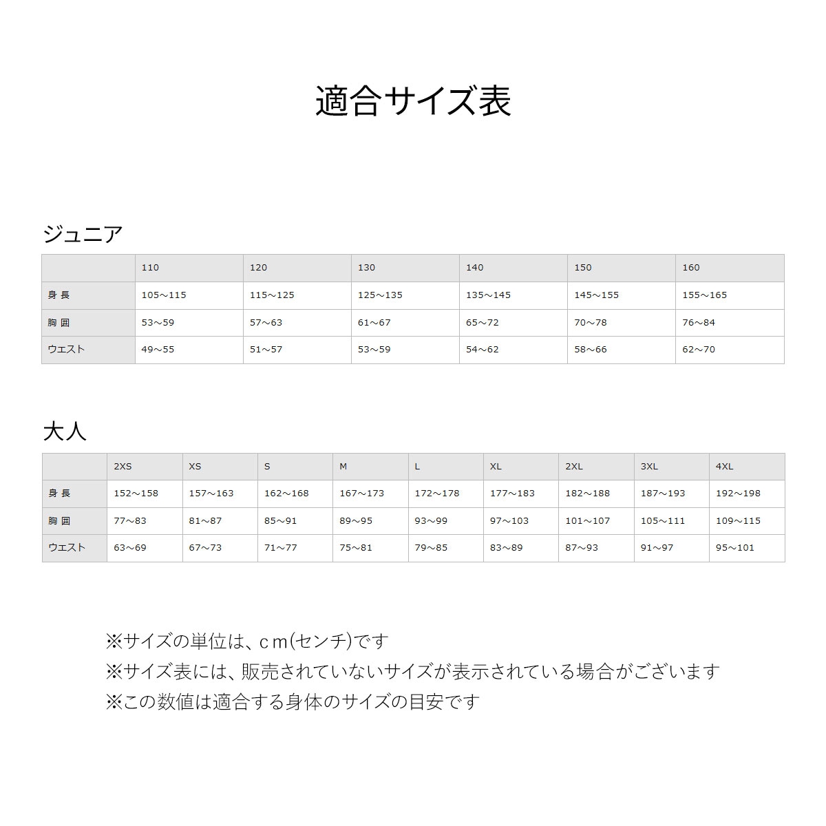 | サイズ | 130、140、150、XS、S、M、L、XL、2XL、3XL