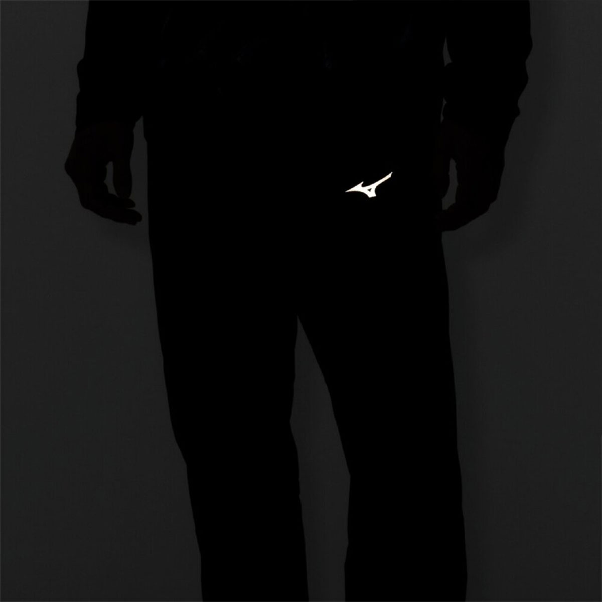ウエストはゴムはヒモつきで、フィット感を調節できます。両サイドにポケット付き、裾にはファスナーがついています。左脚のロゴは光を反射する再帰反射材なので、暗くなるのが早い冬でも安心です。