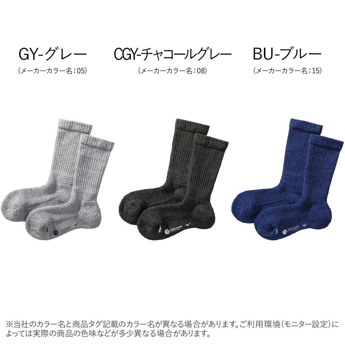 ミズノ MIZUNO ブレスサーモ BREATH THERMO ソックス クルー丈 レディース ウール 厚手 パイル あったか 保温 吸湿発熱