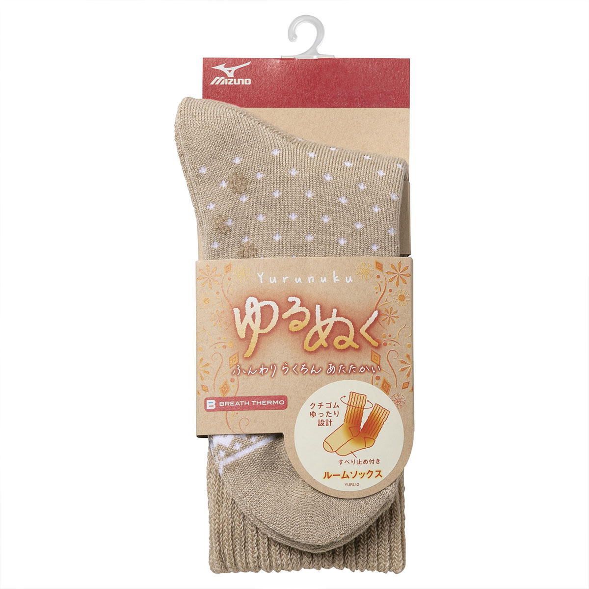 ミズノ ブレスサーモ ゆるぬくソックス 靴下 温活 発熱 保温 節電 冷え対策 ルームソックス あったか 雪柄 レディース 22-24cm(GG-グレージュ-22-24cm) SOLDOUT