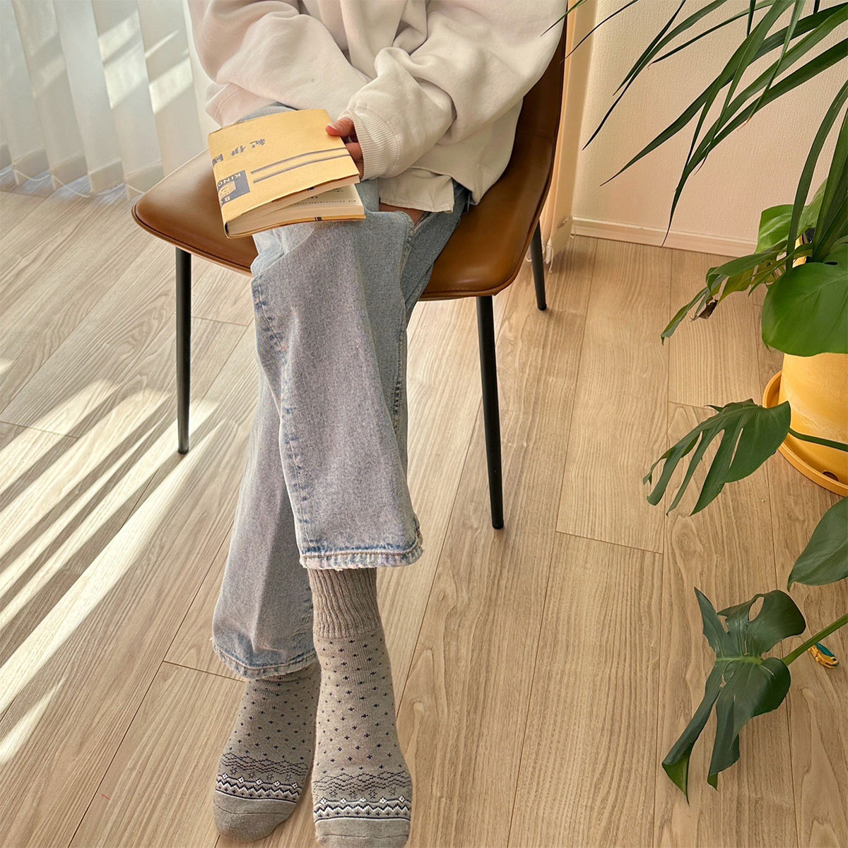 ホームウエアにもコーディネートしやすいシンプルなカラー&デザイン。足裏にはシリコン加工の滑り止め付きでフローリングでも安心です。