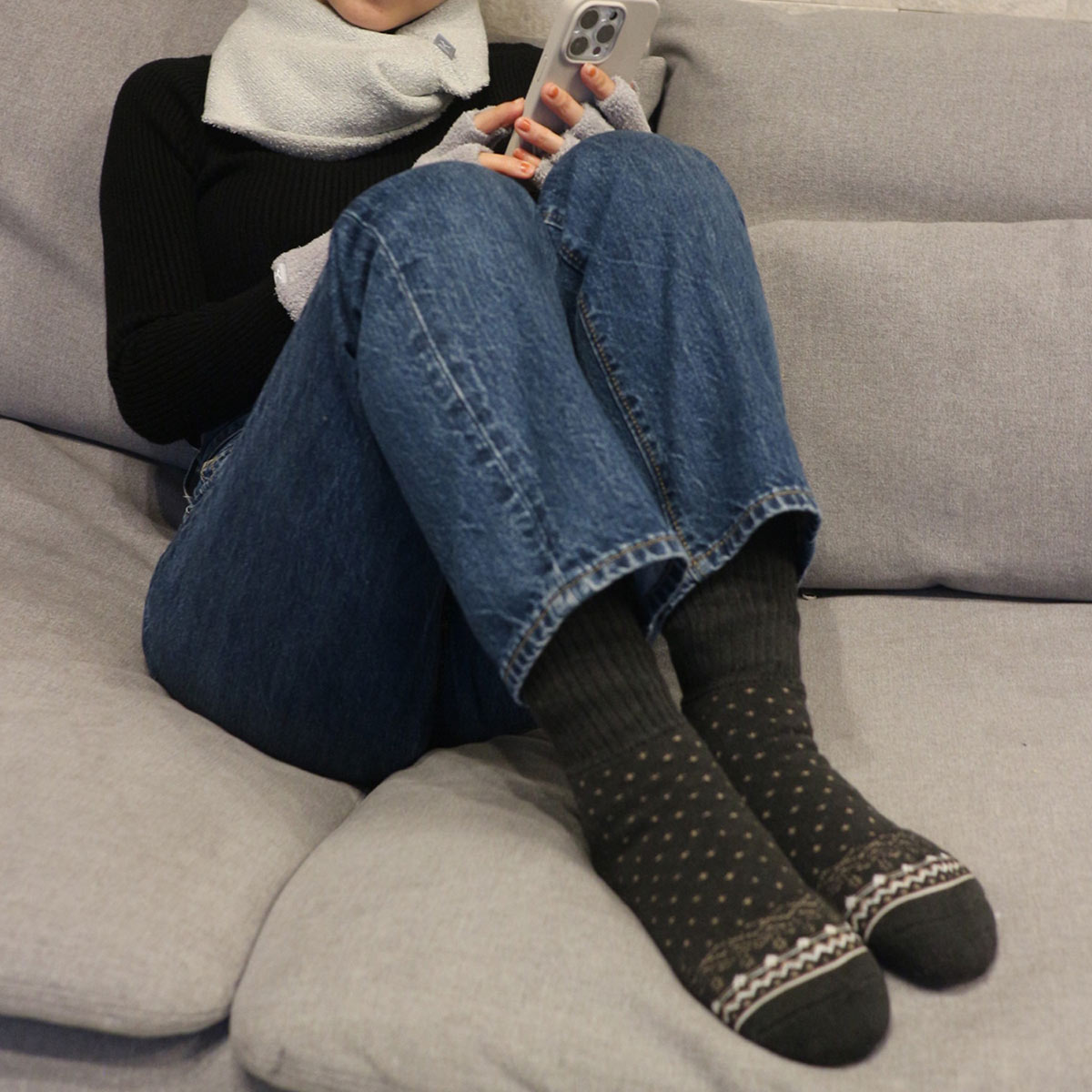 温め効果が高く、長時間着用してもゆったりらくちんでムレにくいルームソックスです。もっちりふわふわ優しい肌ざわりのニット素材で編まれた、締め付けを感じないゆったり設計。ふかふかのはき心地で足元をやさしく包み込み温めます。