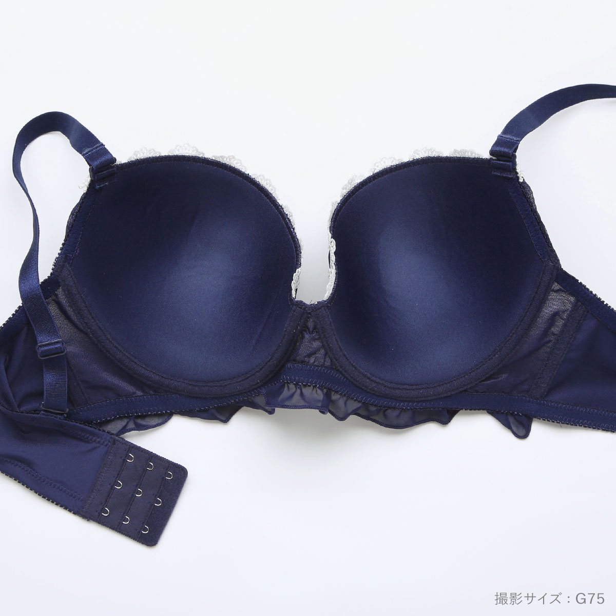 パンキュート プリーツジョーゼット ブラセット GHI65-95 グラマー アンダー大きいサイズ 美胸 谷間 盛り胸 PANCUTE(NV-ネイビー-G65-M)
