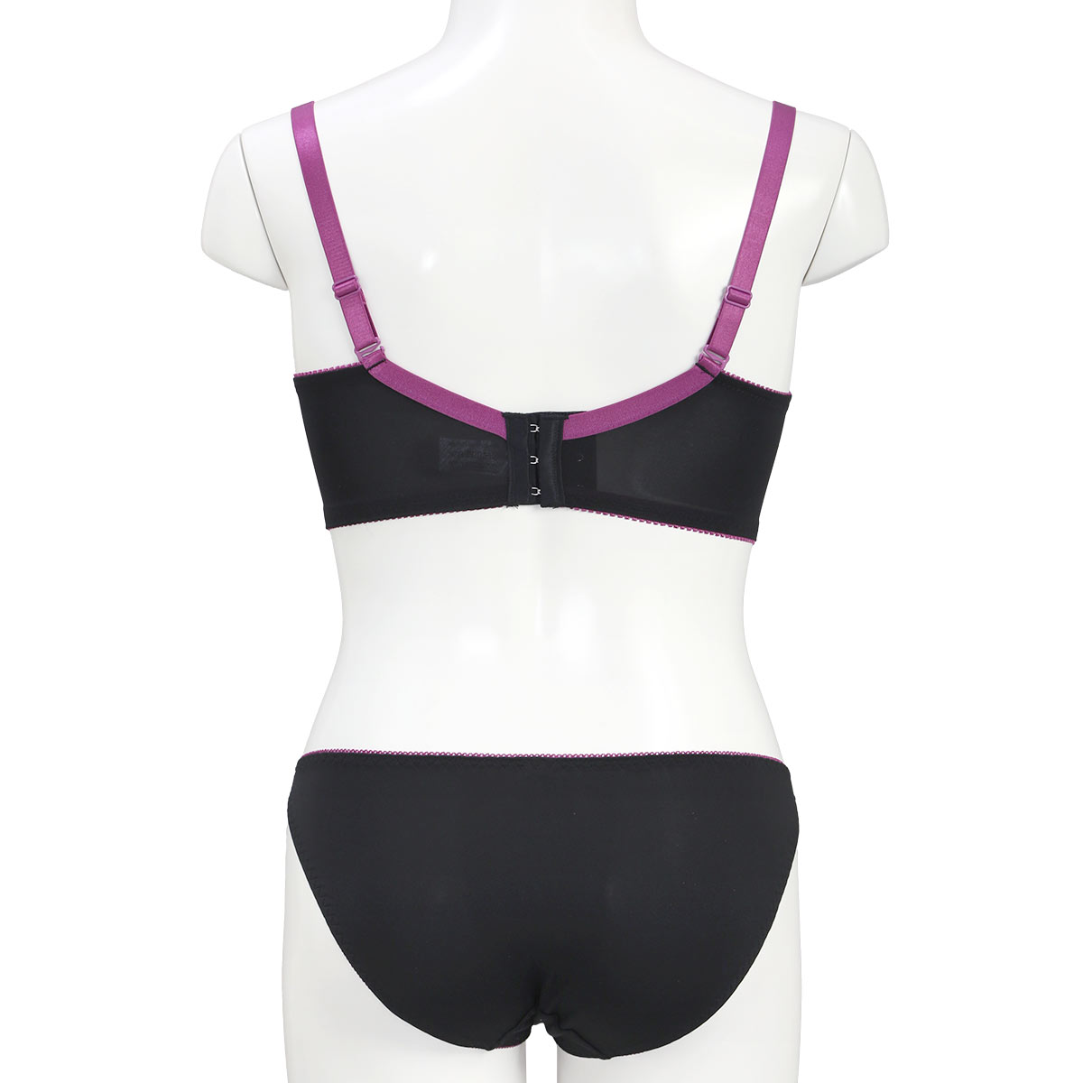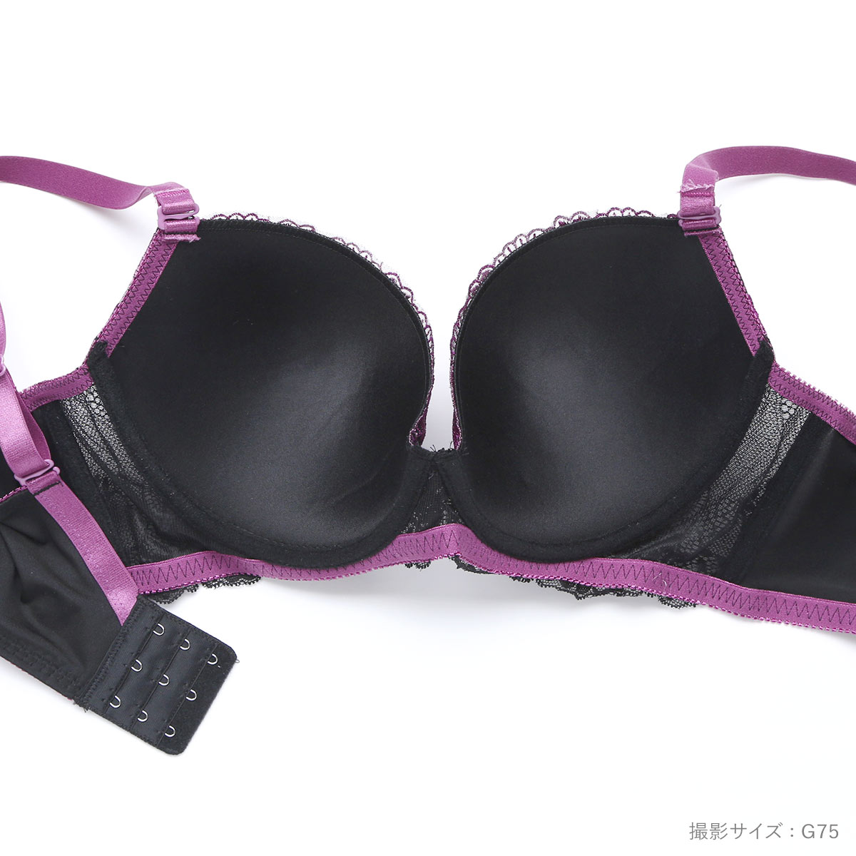 エレガント 脇肉を谷間に変える脇高ブラ フラワー刺繍レース ブラセット GHI65-95 グラマー ブラジャー ショーツ セット Elegante(PU-パープル-G65-M)