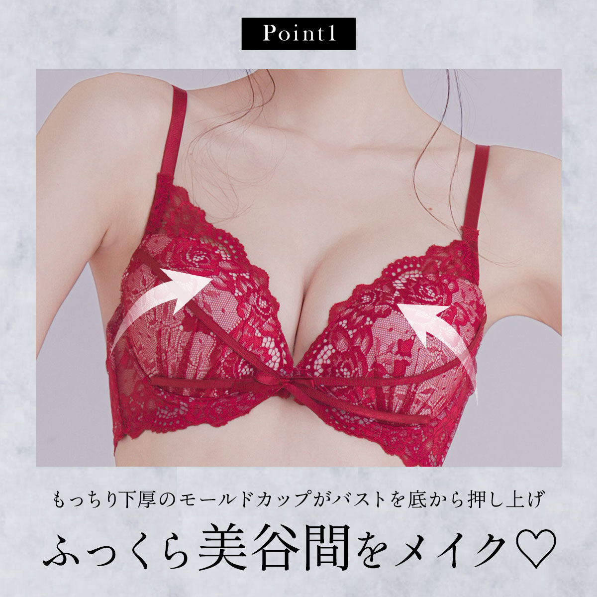 脇高&下厚カップで、もちっと魅惑のえち谷間♪可愛さの中に色っぽさを忍ばせる、あざとセクシーなブラセット☆