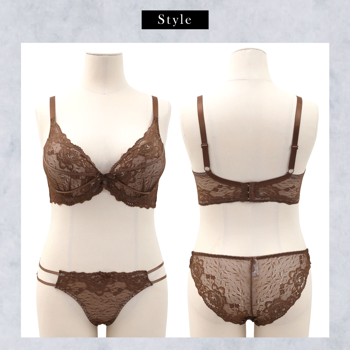 シアーなレースにきゅっとリボンを結んだようなストリング使いが愛らしいデザイン。上品なのにドキッとさせるアンバランスさが魅力です☆
