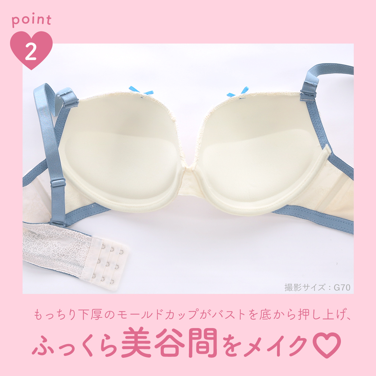 ブラはもっちり下厚のモールドカップを使用しているので、つけるだけでふっくら谷間と自然で丸みのある綺麗なシルエットを演出してくれます。