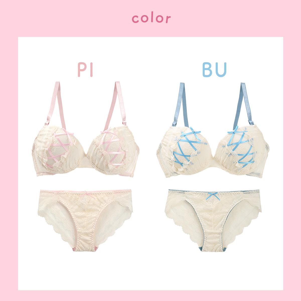 下厚カップで、もちっと美谷間メイク♪とろけるような甘さにきゅんとときめく、ロマンティックなブラセット。
