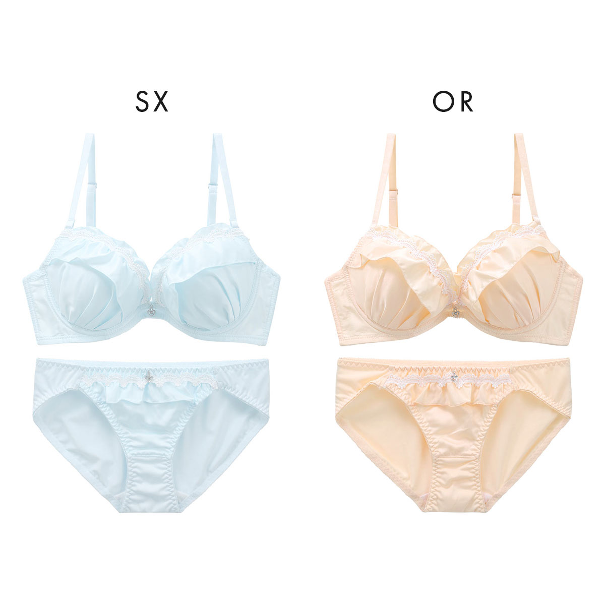 パンキュート 脇肉を谷間に変える脇高ブラ マットサテンフリル ブラセット ABCDEF 盛り胸 谷間 グラマー アンダー大きいサイズ(SX-サックス-A70-M)