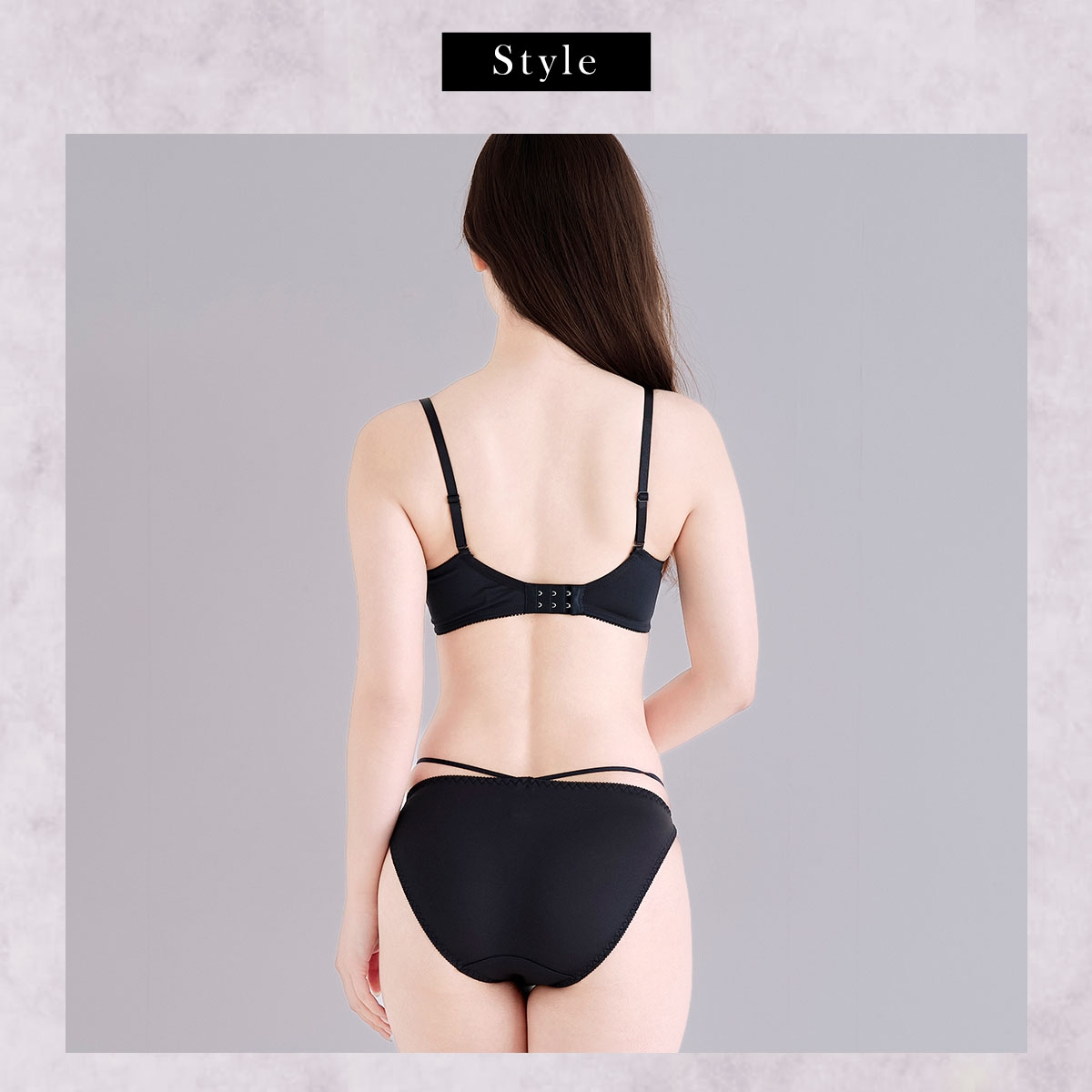 セットショーツはデイリーに使いやすいノーマルタイプで、華奢なストリングがセクシーなデザインです。後ろ身生地はタテヨコに伸縮性のあるなめらかでフィット感のあるはき心地です。