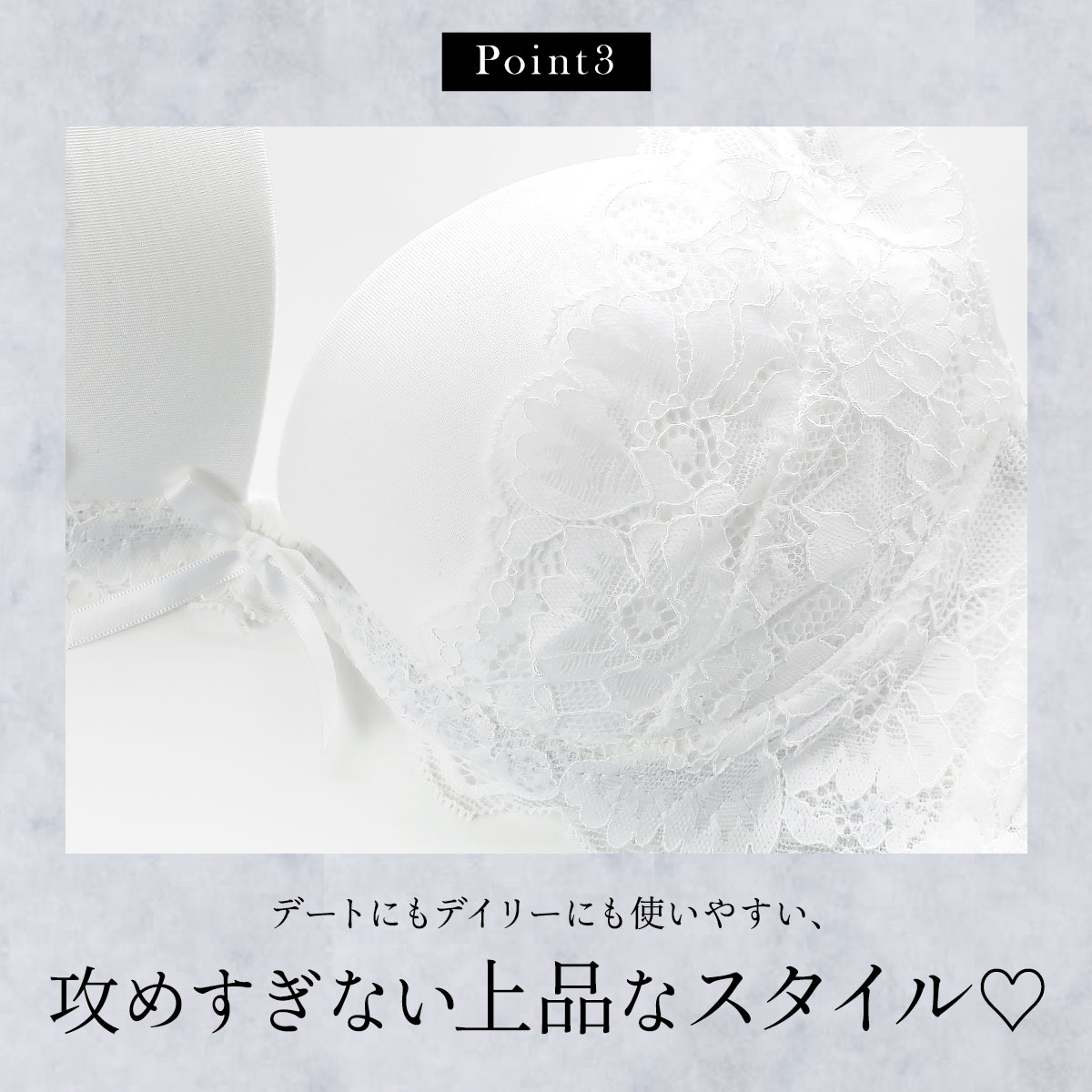 デートにもデイリーにも使いやすい、ワンカラーのシンプルなレースデザイン。攻めすぎない上品なスタイルに彼もきっとドキドキしちゃうハズ☆