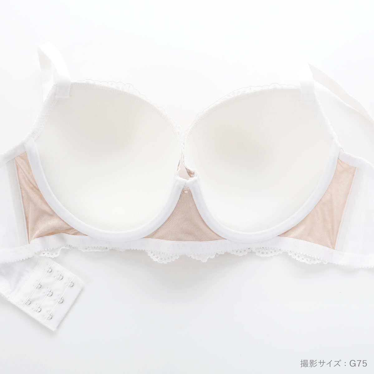 | 仕 様 | ブラ ・ホックの数:3段3列 ・3/4カップ ・モールドカップ(パッド・パッドポケットなし) ・肩紐取外し:不可 ・ワイヤー入り ・サイドボーン:あり