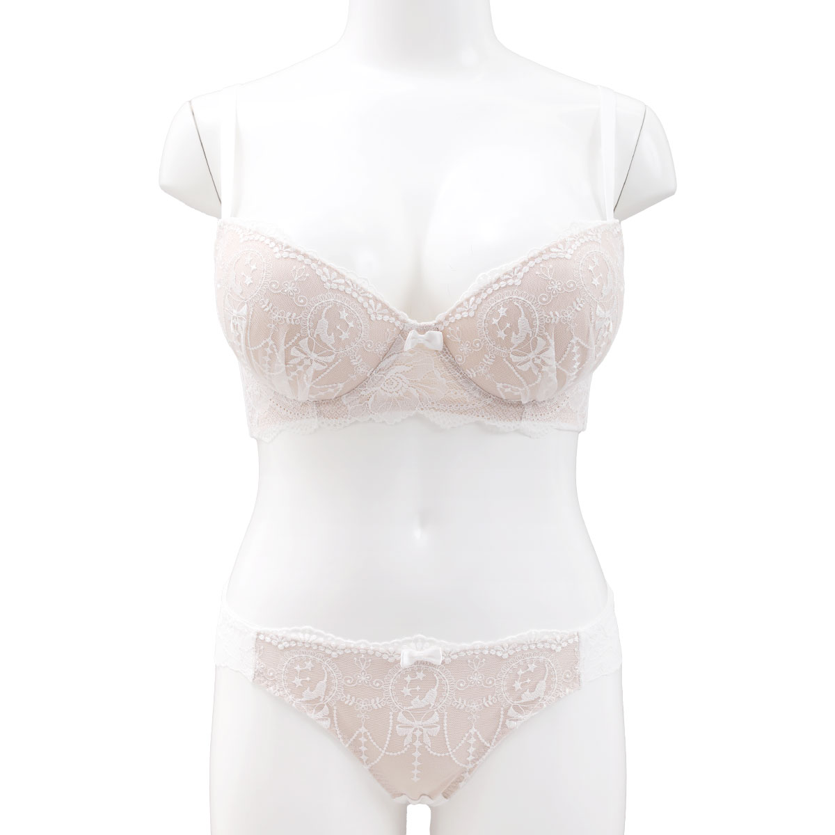 愛らしいネコちゃんのシルエットや、星、リボンが散りばめられた、ときめき溢れるロマンティックなブラセット♪シンプルなカラーでデイリー使いにもピッタリです☆