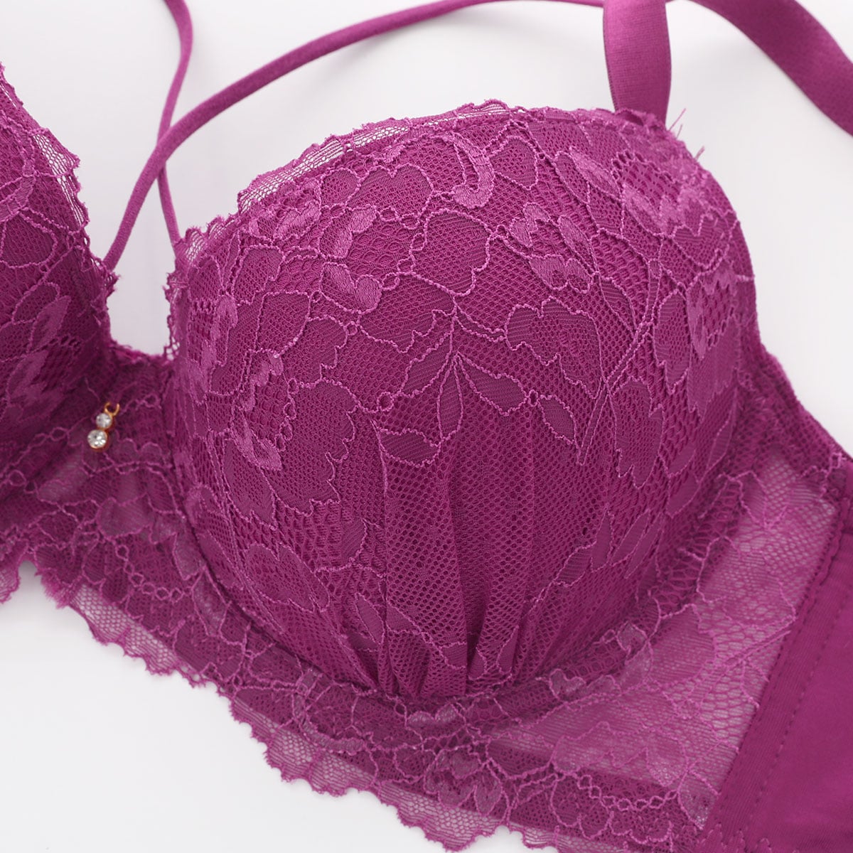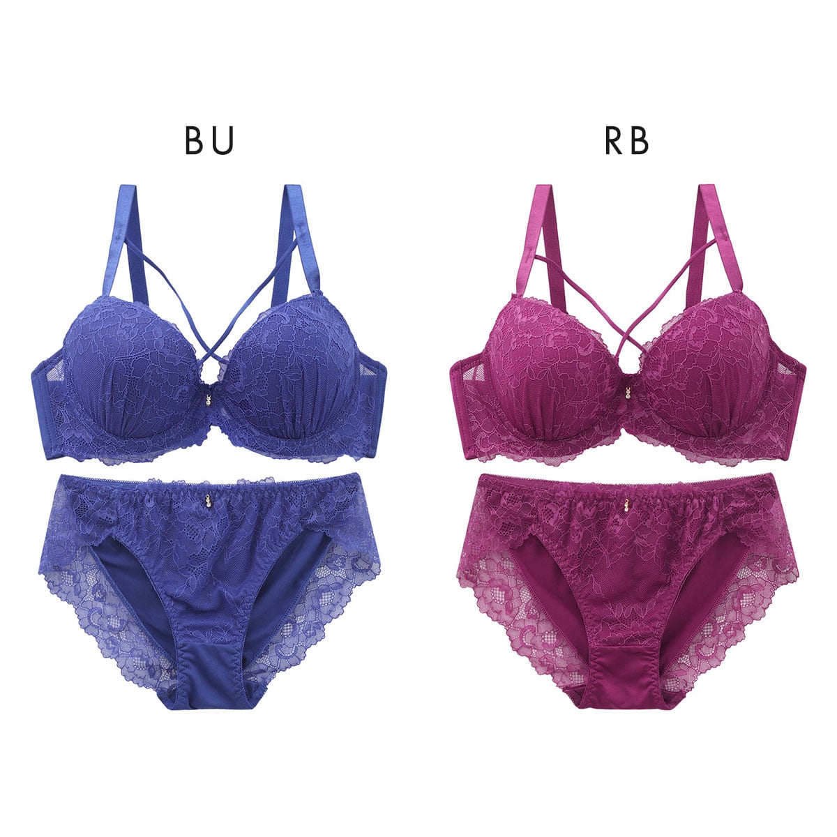 大感謝価格 エレガント クロスデザイン レーシーブラセット DEFGHI 85-95 グラマー アンダー大きいサイズ 着やせ 脇寄せ 谷間 Elegante