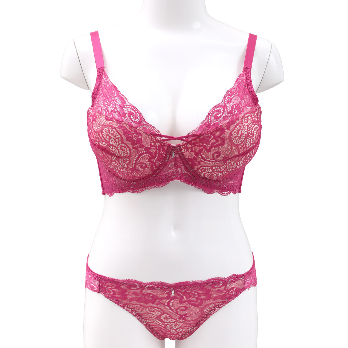 シアーなレースに華奢なストリングを組み合わせ、ワンカラーで仕上げたシンプルでセクシーなデザインのブラセット。