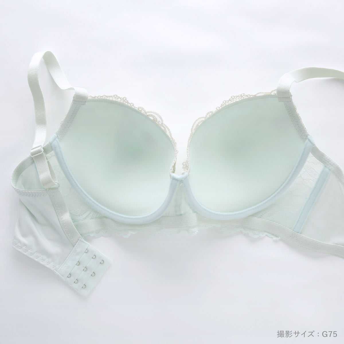 ブラは脇肉を谷間に変える脇高設計。脇に高さのあるL字のカップラインが寄せたバストボリュームを逃さずキープし、気になる脇肉もすっきりカップイン。