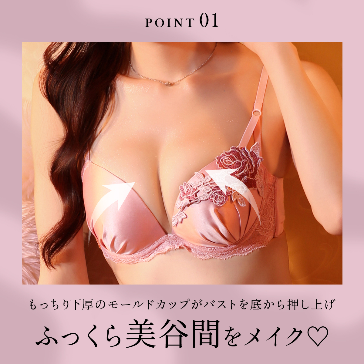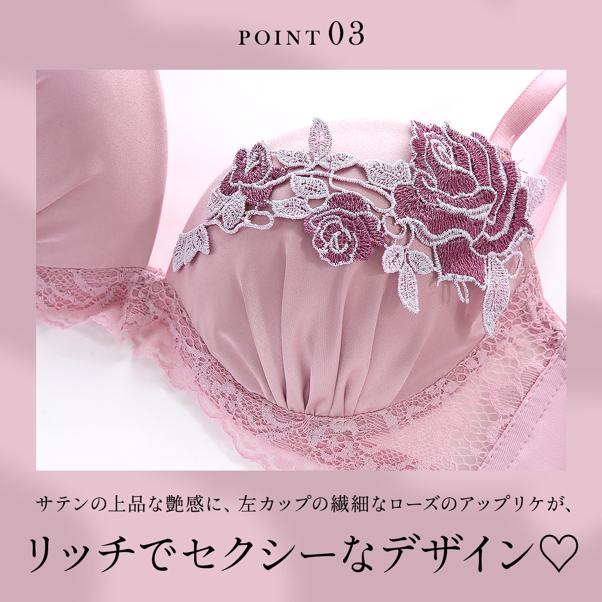 脇高&下厚カップで、もちっと魅惑的な谷間に♪サテン×ローズの最強コンビネーションで最上級のレディになれちゃうブラセット☆