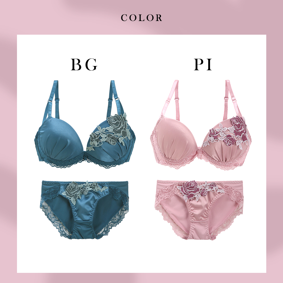 脇高&下厚カップで、もちっと魅惑的な谷間に♪サテン×ローズの最強コンビネーションで最上級のレディになれちゃうブラセット☆