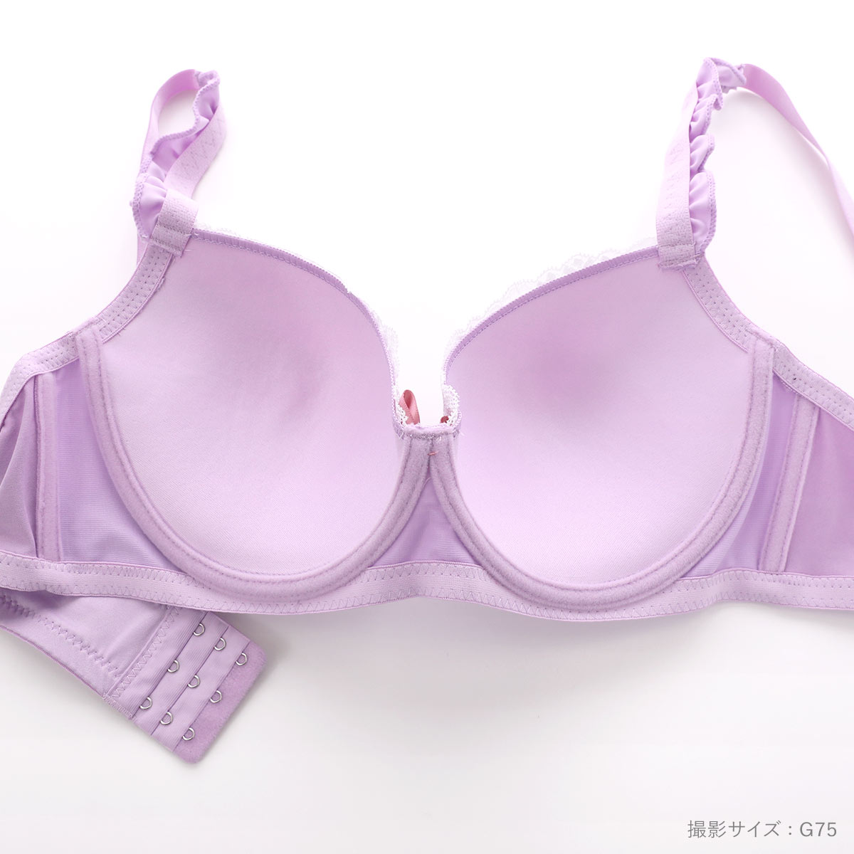 | 仕 様 | ブラ ・ホックの数:3段3列 ・3/4カップ ・モールドカップ(パッド・パッド受けなし) ・肩紐取外し:不可 ・ソフトワイヤー入り ・サイドボーン:あり