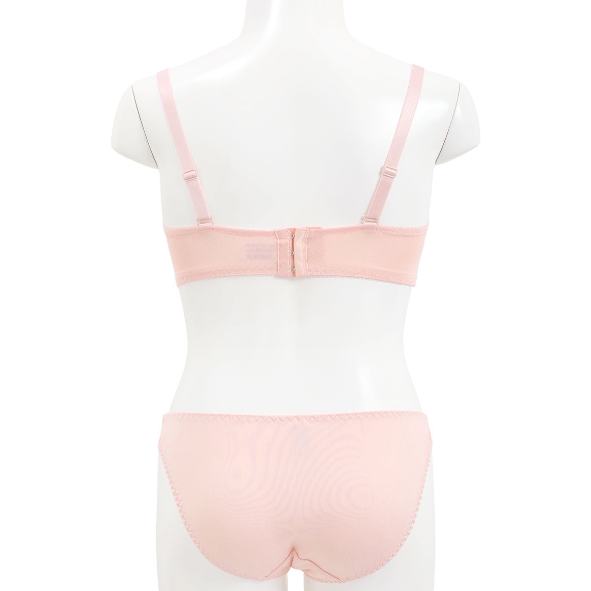ブラは薄くて軽いもっちり触感のモールドカップを使用しているので、つけるだけで自然な丸みが綺麗なバストシルエットをメイクしてくれます。脇に高さのあるL字のカップラインが寄せたバストボリュームを逃さず、綺麗なシルエットをキープ。