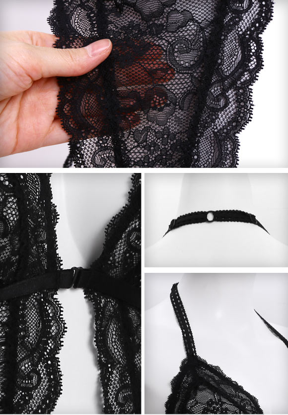 肌にぴったりと沿うレースがボディラインを強調する、誘惑的でセクシーなデザインです。