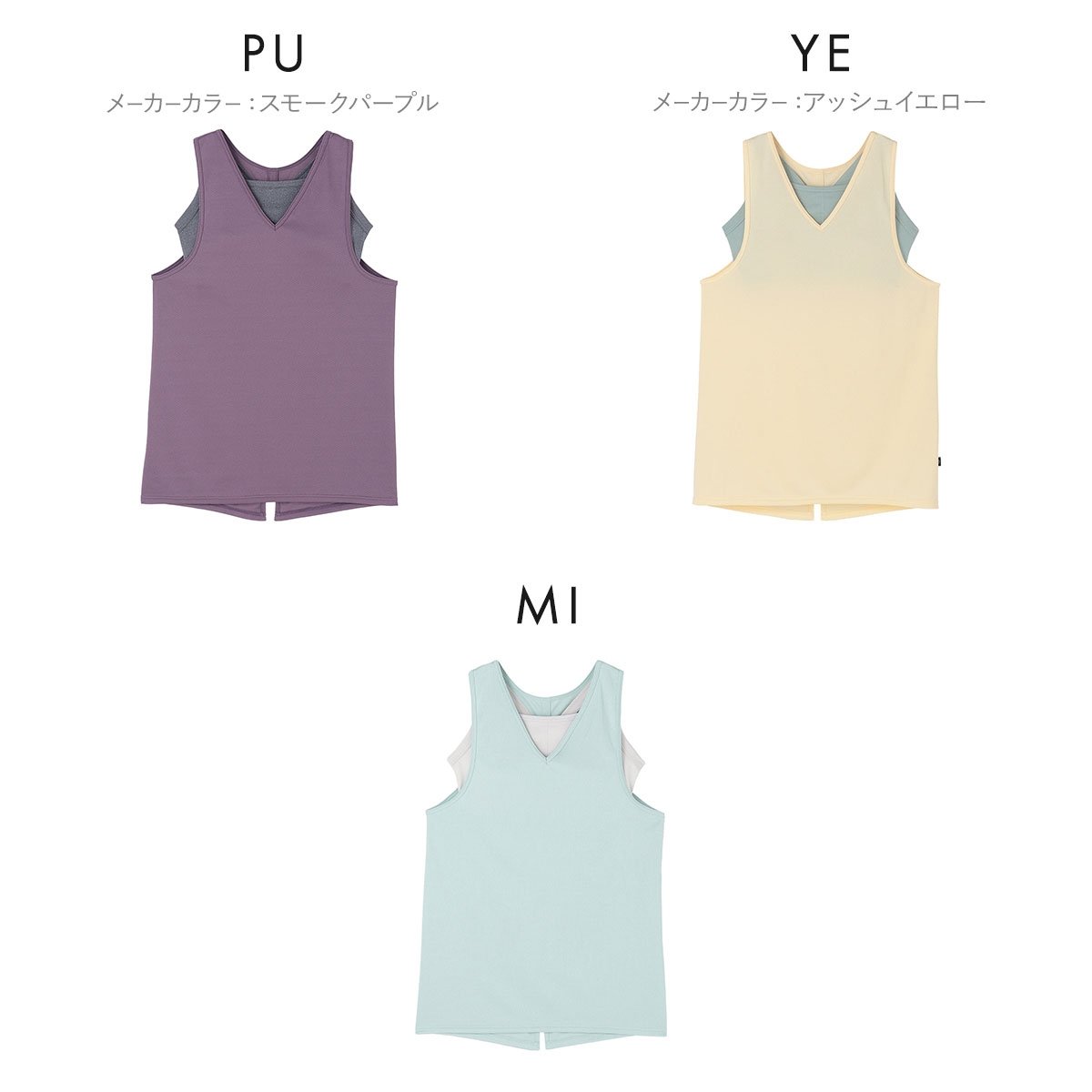 ※ハーフトップとタンクトップは縫い付け固定されています。別々に着用できません。