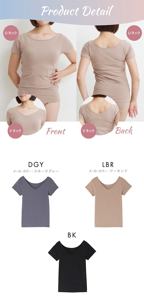 オールシーズン使える ベーシック ブラトップ カップ付き フレンチ袖 インナー レディース 無地 綿混 ドライ