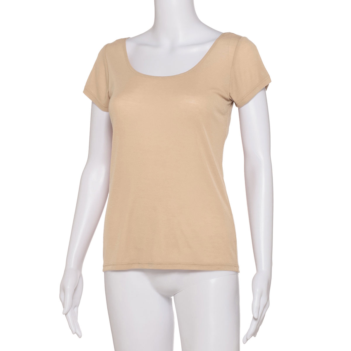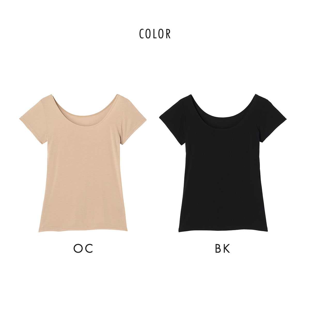 オールシーズン使える ベーシック ブラトップ カップ付き フレンチ袖 インナー レディース 無地 綿混 ドライ