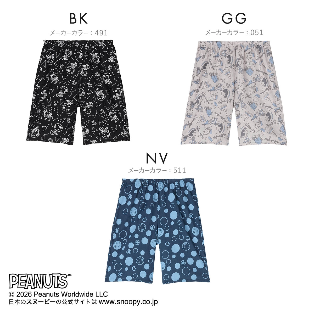 PEANUTSキャラクタープリントの5分丈ステテコ
