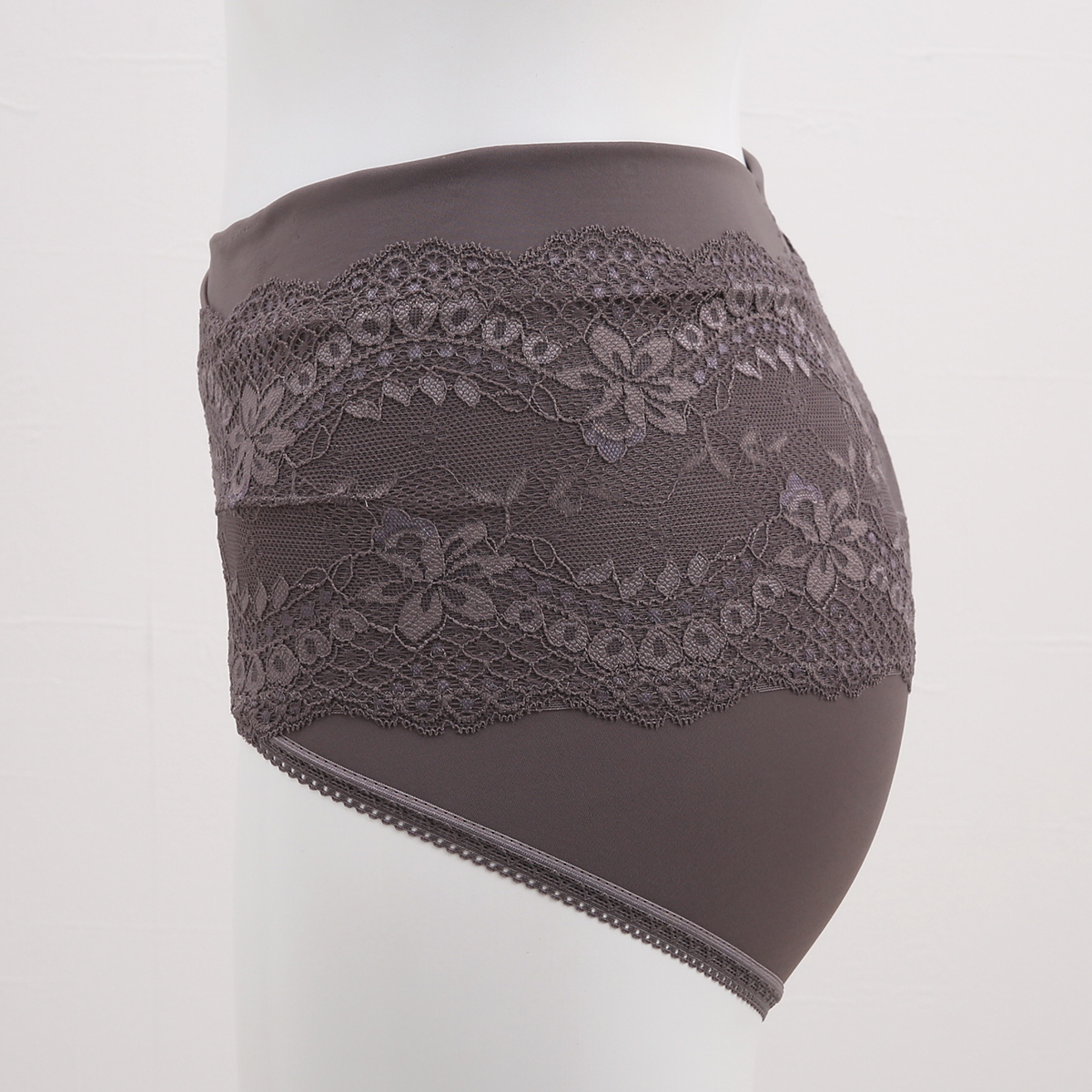 縦横に伸びるナイロン2way生地を使用したレース骨盤ベルト付きショーツ。パワーネットで骨盤部分を引き締めることで、下腹を意識し、美しい姿勢づくりをサポートします。お腹もおさえてくれるので、気になる下腹もすっきり。