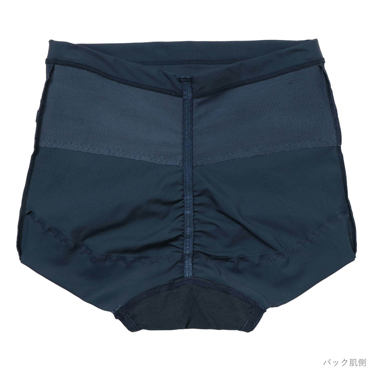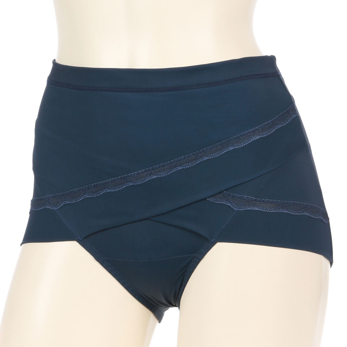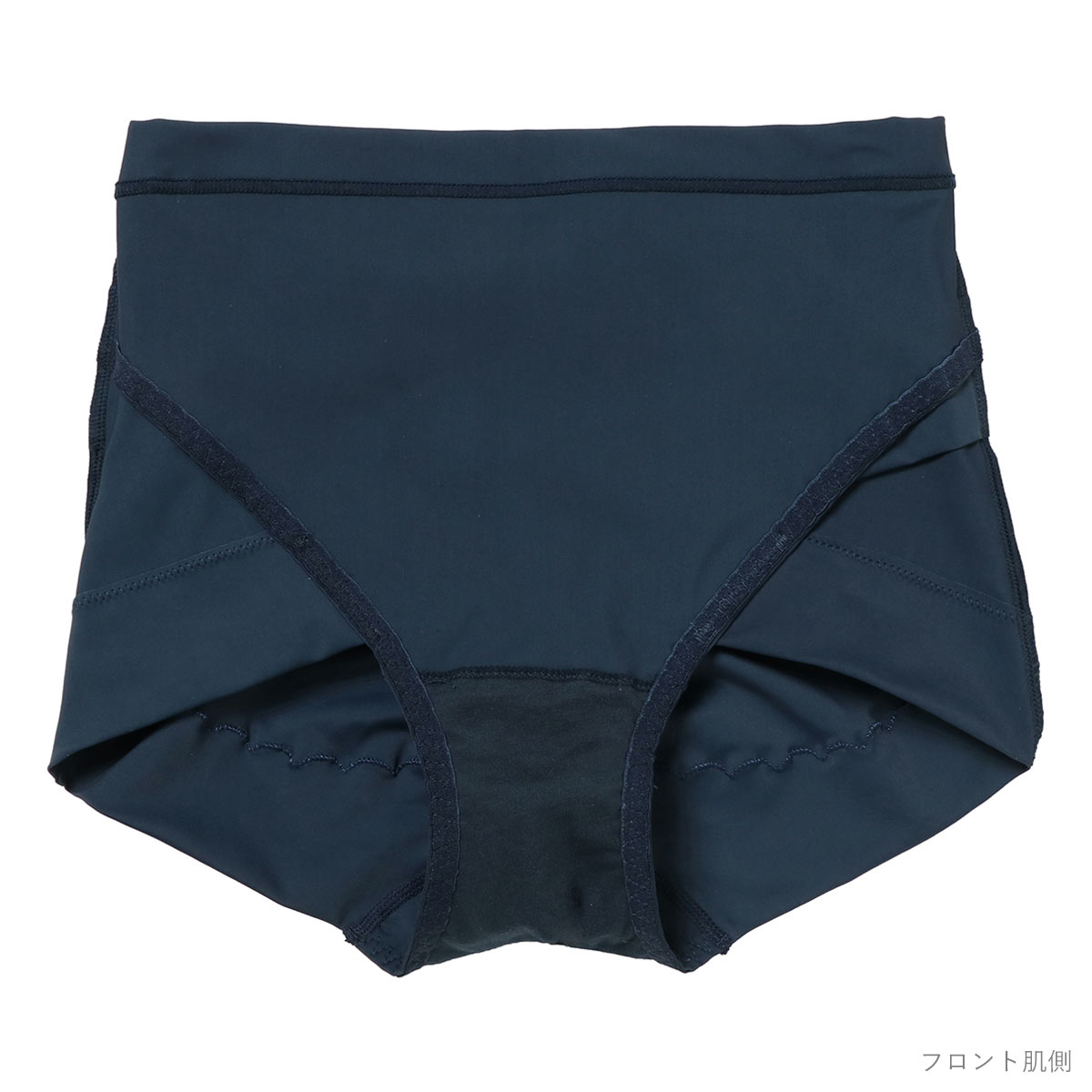 折り返しのクロス構造で骨盤周りを引き締めて、気になるぽっこりお腹もすっきり見せ!骨盤を軽く前傾させることで、上半身が骨盤の上にまっすぐに乗り、背筋がピンと伸びたシャキッとした美しい姿勢づくりをサポートします。