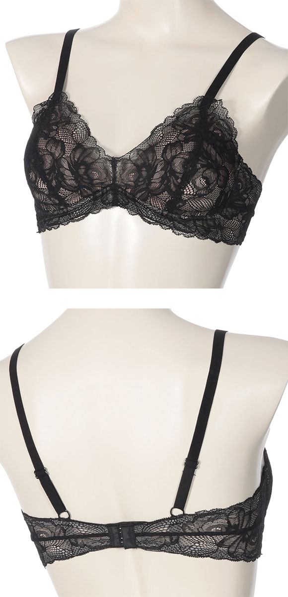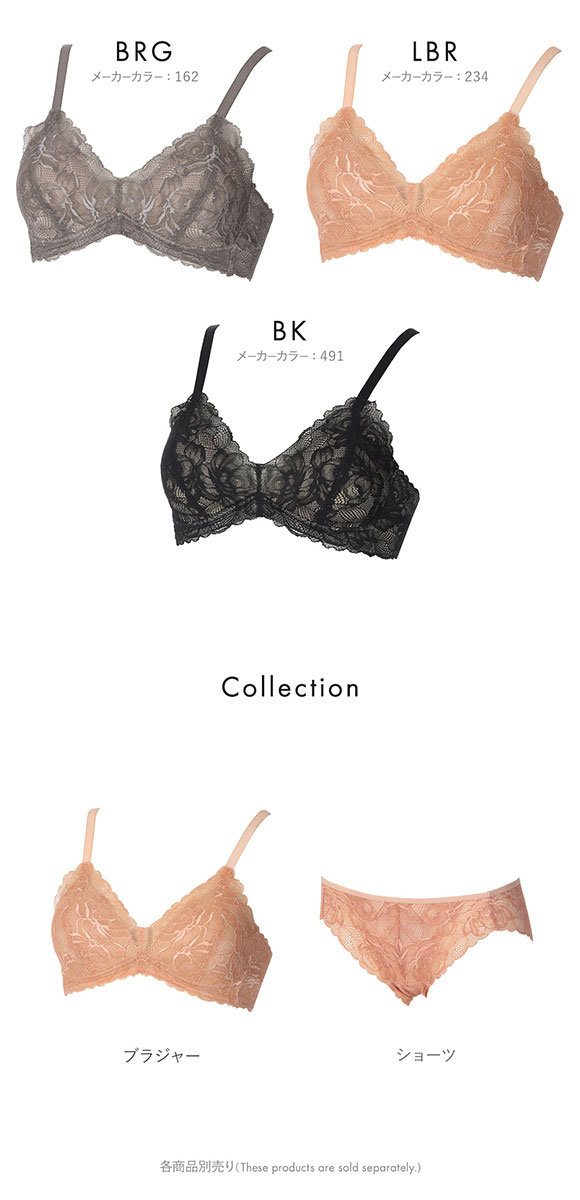 伸縮性のあるやわらかなレース使いで、つけ心地は快適なのに美しく華やかな印象に。やわらかくて丸みがきれいなモールドカップがほどよくバストの横流れを抑え、バストをつつみこんですっきり。