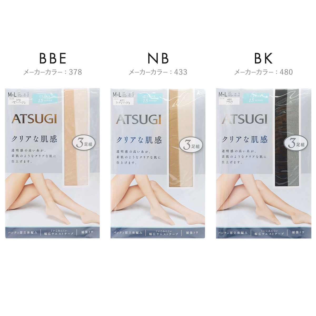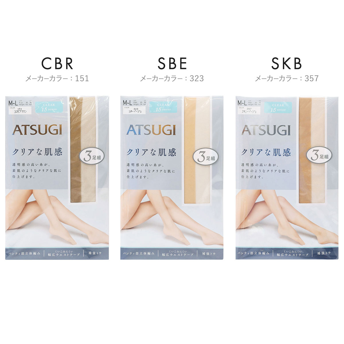 | カラー | CBR-コスモブラウン、SBE-シアーベージュ、SKB-スキニーベージュ、BBE-ベビーベージュ、NB-ヌーディベージュ、BK-ブラック |