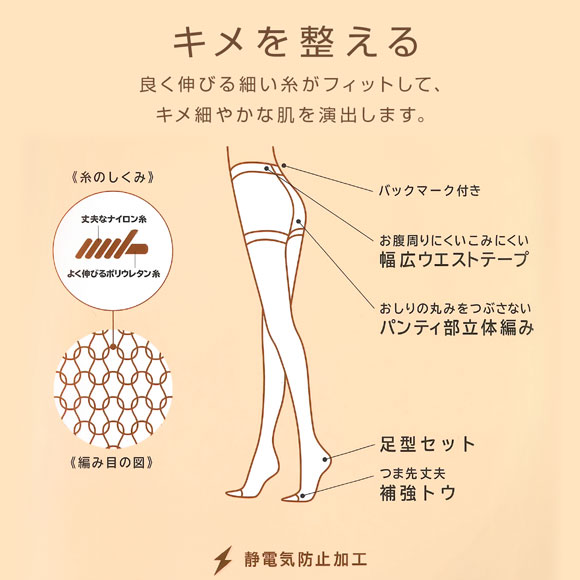 よく伸びる細い糸がフィットして、キメ細やかな肌を演出