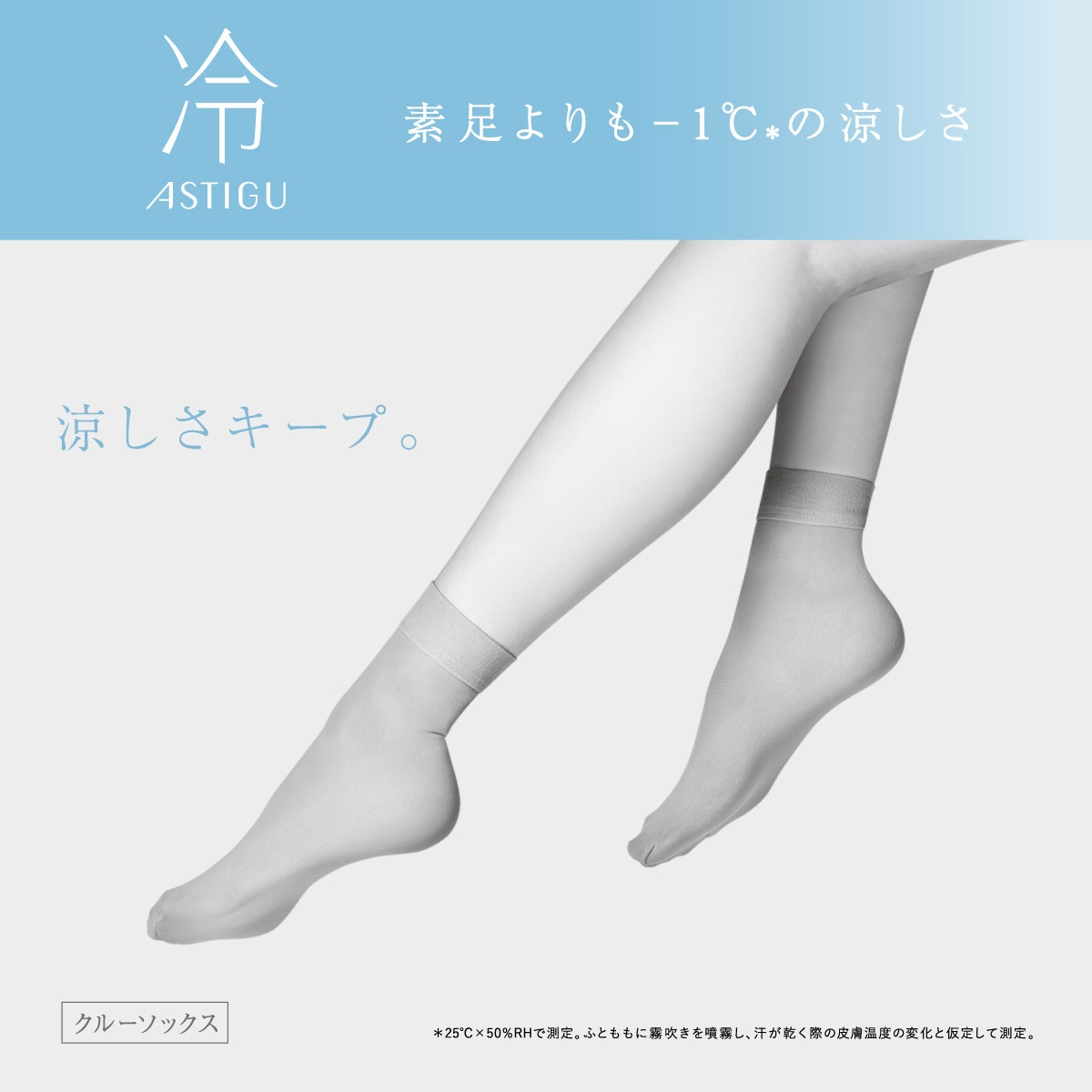 アツギ アスティーグ クルー丈ソックス涼しさキープ アスティーグ 冷 自然な素肌感 ATSUGI ASTIGU