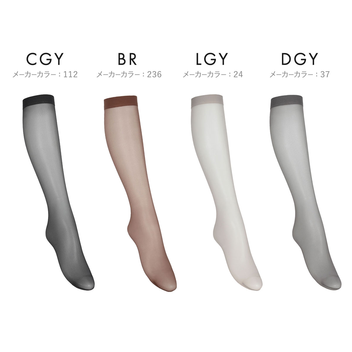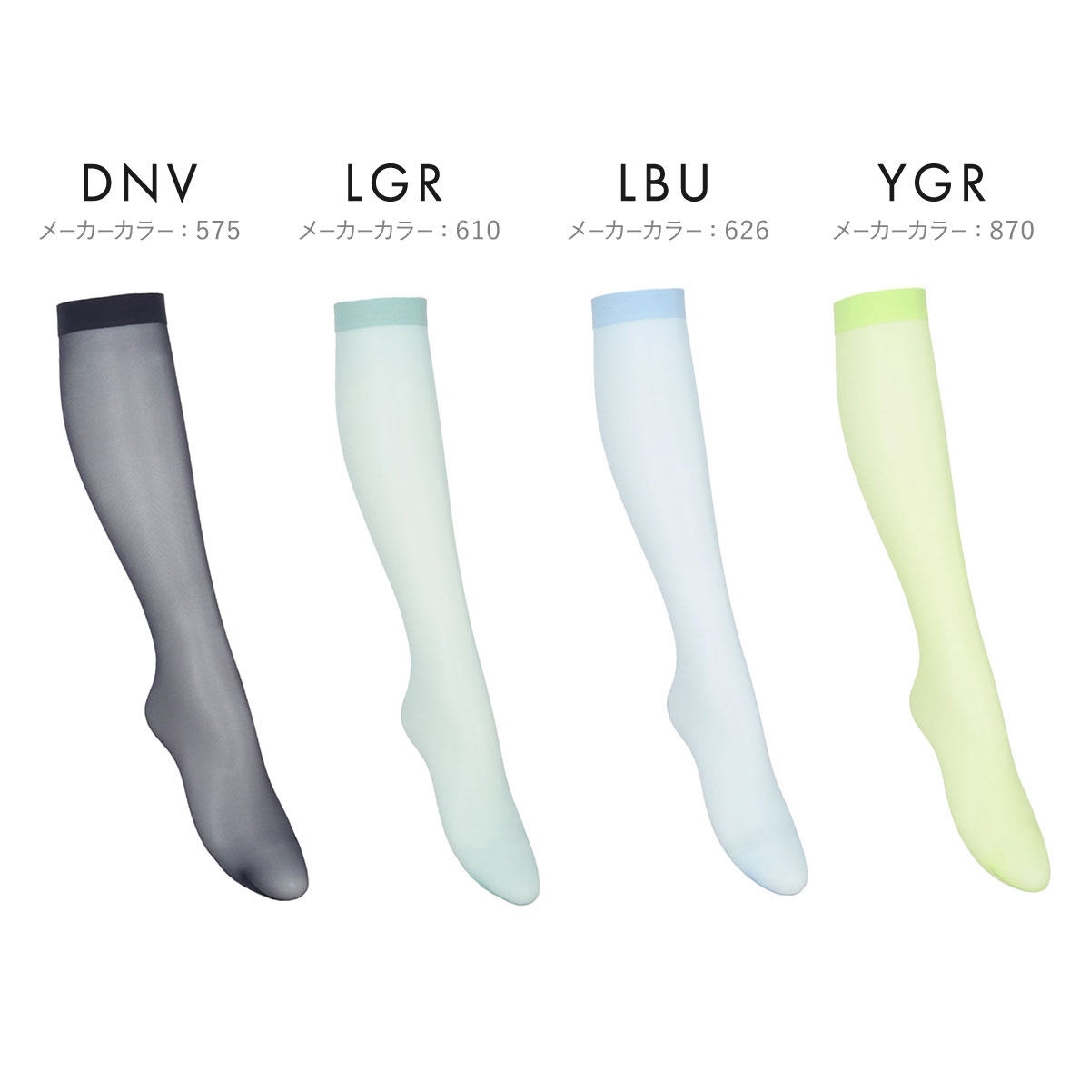 25デニールのカラーハイソックスは肌がほんのり透けて、コーデに軽やかさをプラスします。
