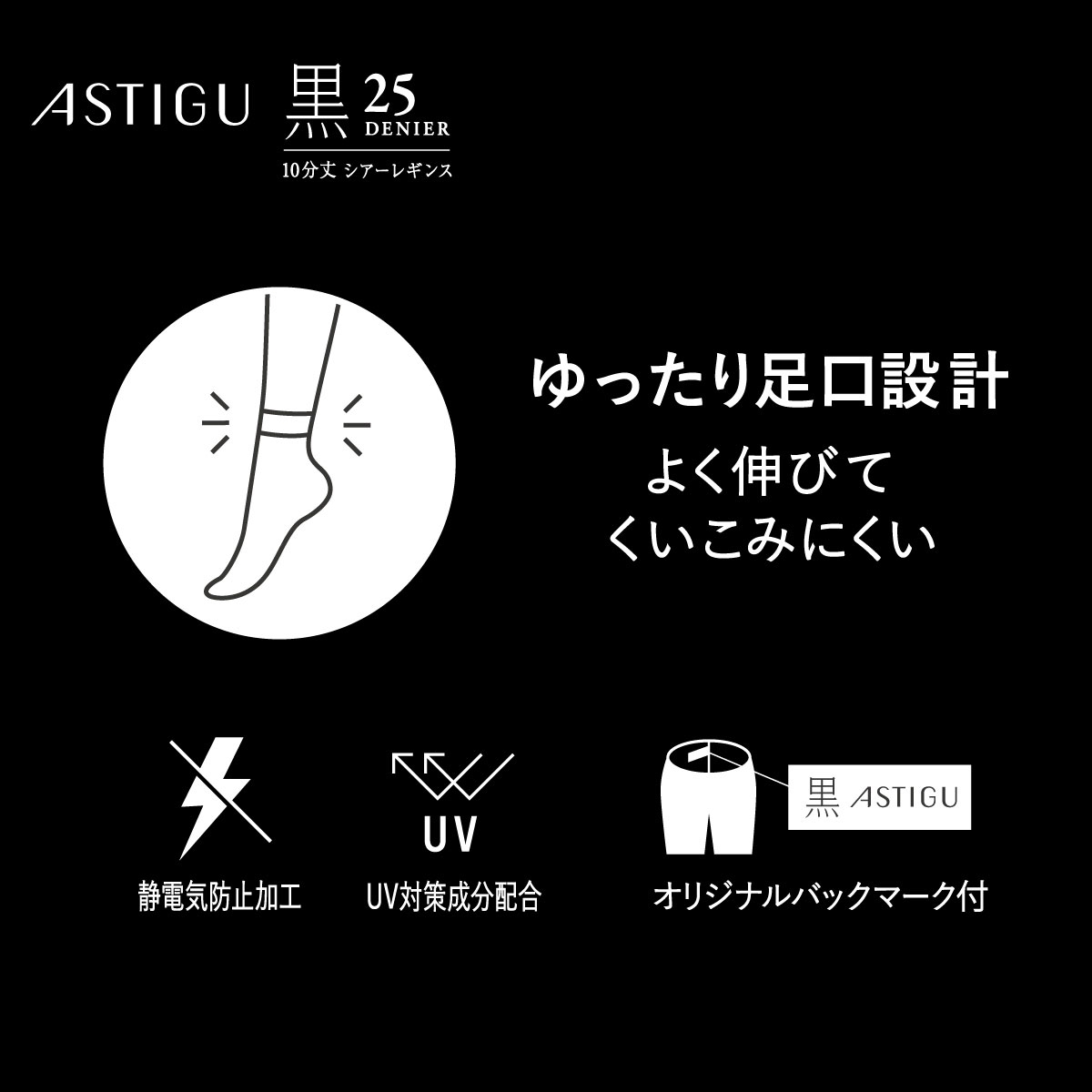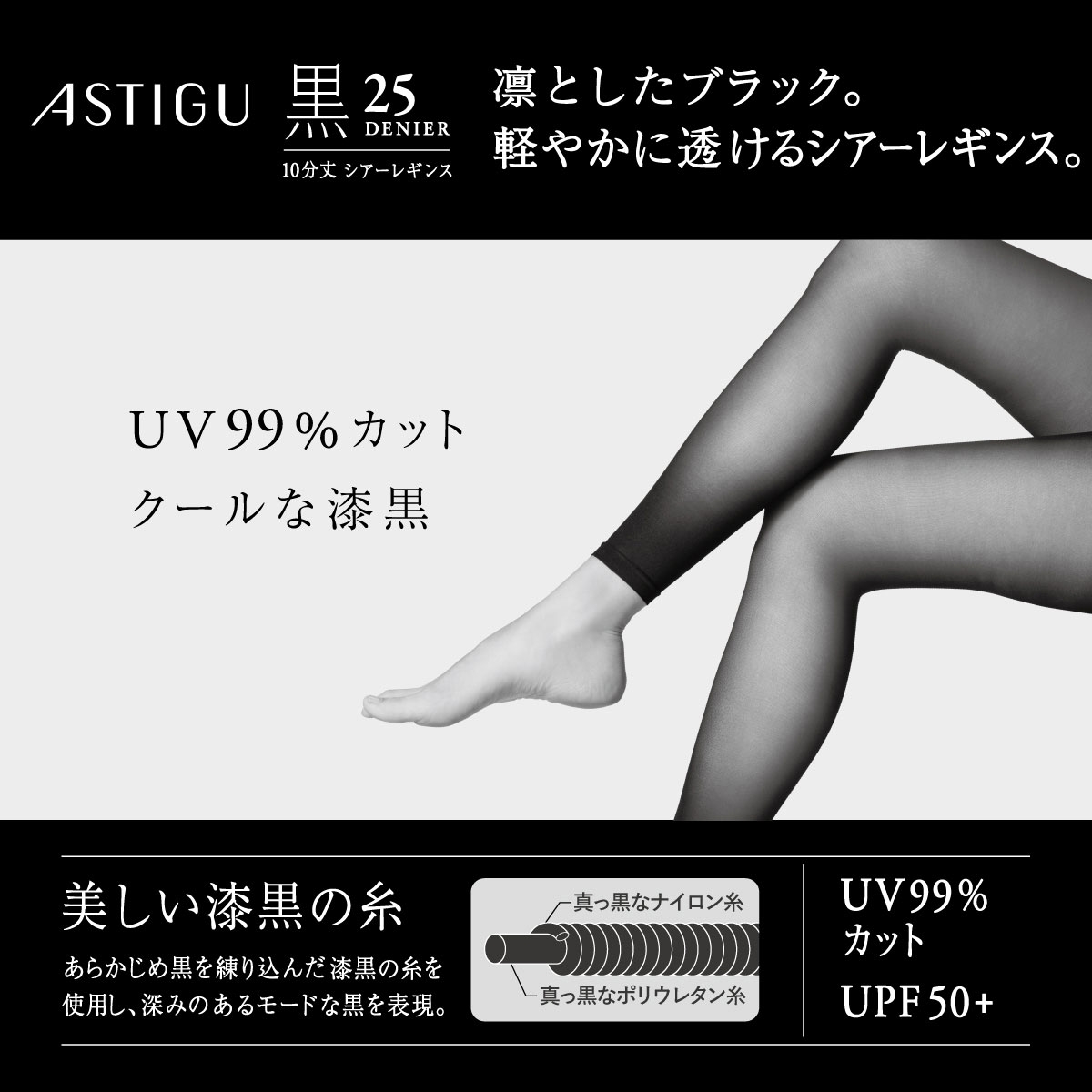 アツギ アスティーグ 黒 クールな漆黒 25デニール シアー10分丈レギンス ATSUGI ASTIGUアツギ アスティーグ 黒 クールな漆黒 25デニール シアー10分丈レギンス ATSUGI ASTIGU