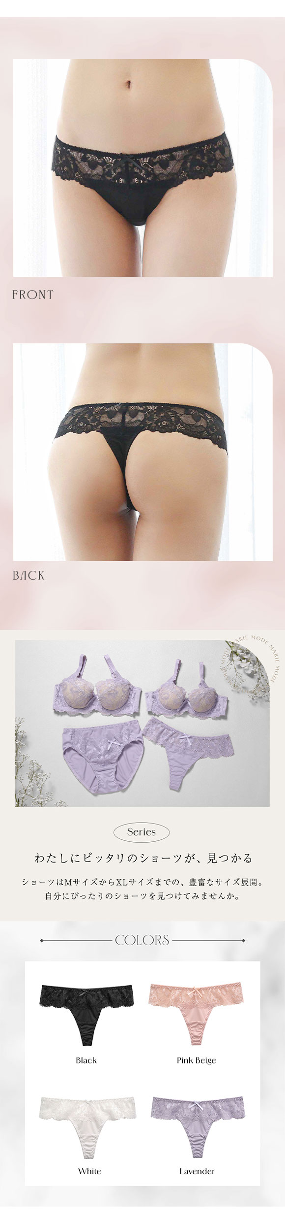 Tバック ショーツ タンガ 豪華 レース 刺繍 花 アップリケ 可愛い バックレース モンシェルピジョン TIAM M L LL Mon cher pigeon