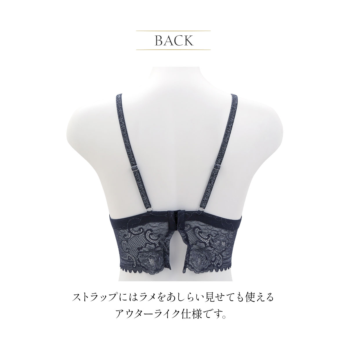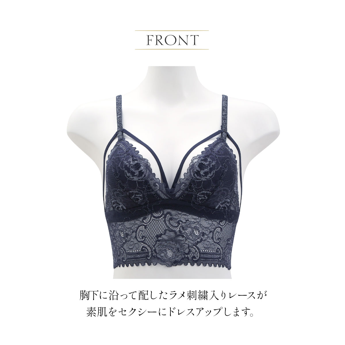 繊細な輝きを放つラメローズ刺繍が美しいSaharaコレクション。胸下に沿って配したラメ刺繍入りレースが素肌をセクシーにドレスアップします。