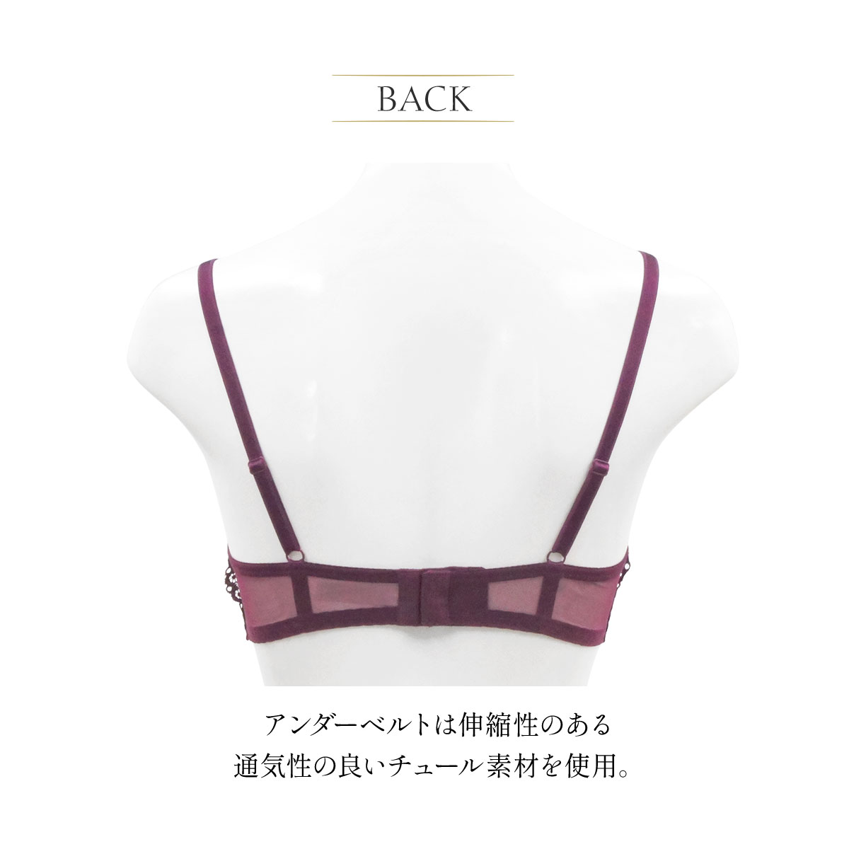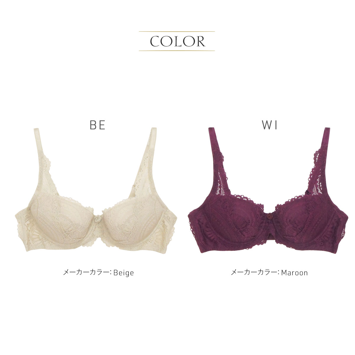 華やかなオリジナルレースとバイカラーが印象的なコレクション“Royal3”。女性らしいMaroonと肌なじみの良いBeigeの2色展開。美しいレースがバストを包み込むような上品なデザイン。サイドボーンが脇をすっきり見せ、バストを下から持ち上げてくれます。アンダーベルトは伸縮性のある、通気性の良いチュール素材を使用。
