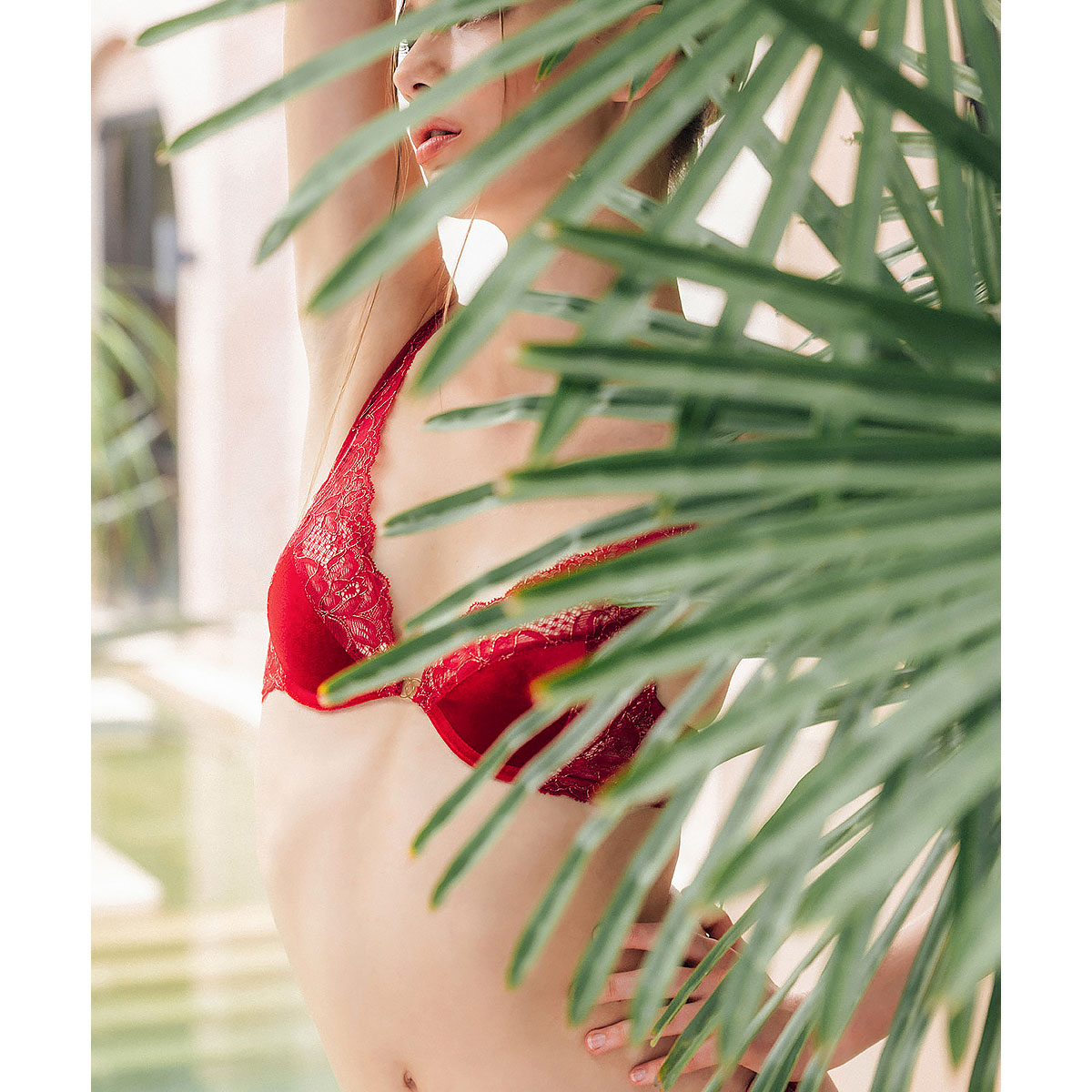 艶感が美しいベロアとレースが描く、丸く自然なバストシルエット
