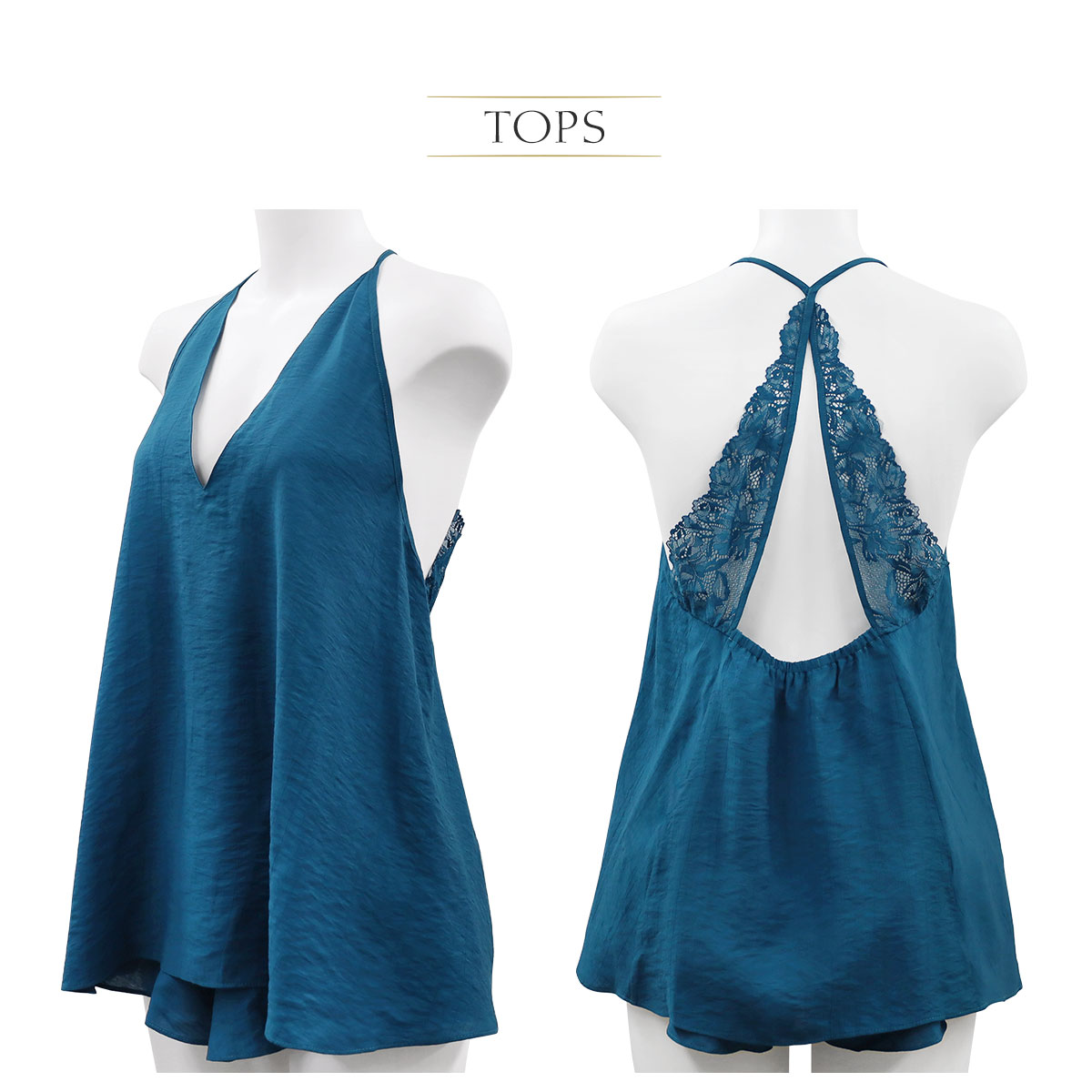 セレブビューティー Celeb Beauty ルームウェア パジャマ 上下セット シンプルレース キャミソール カップ付き & タップパンツ