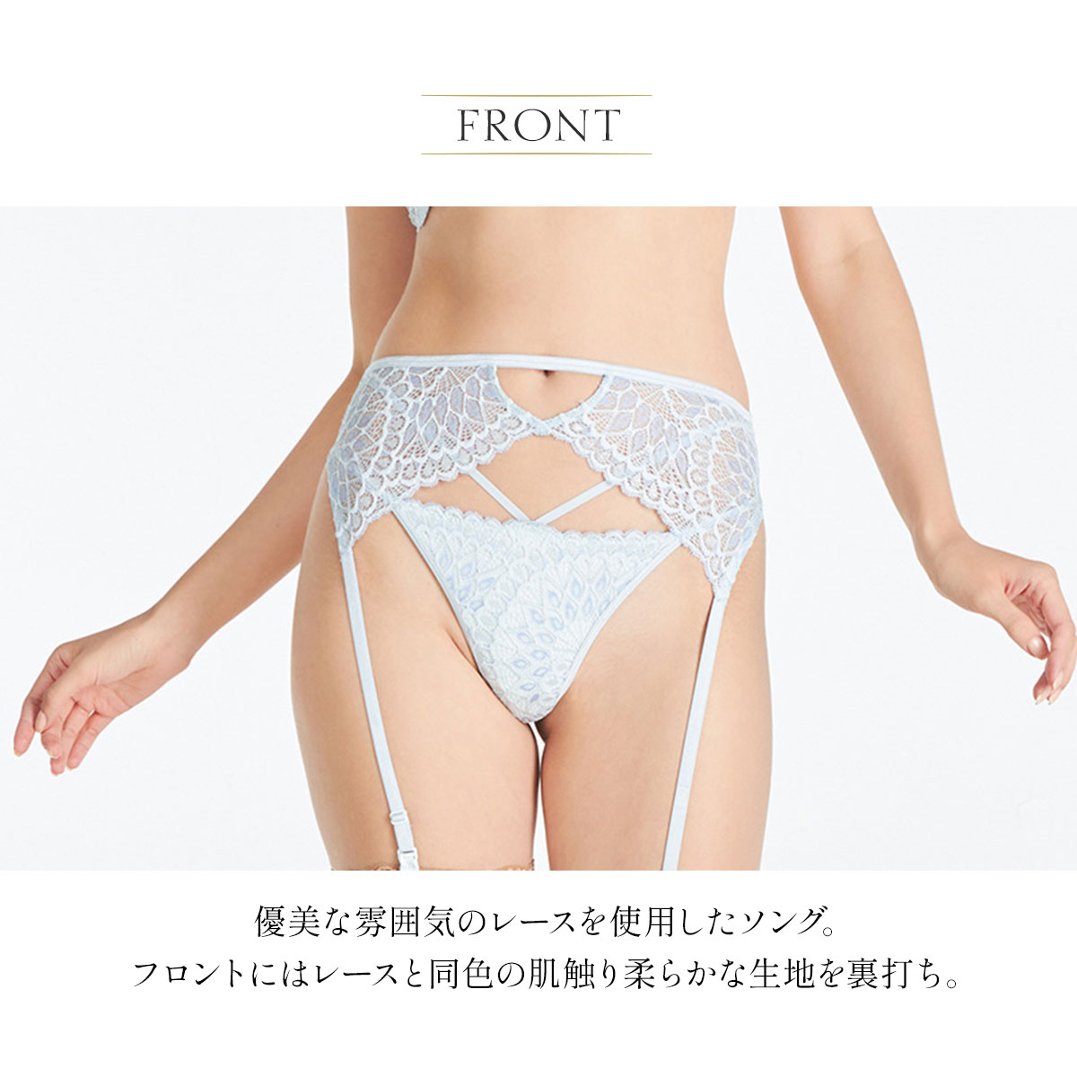 優美な雰囲気のレースを使用したソング。ミニマルなデザインながら、エレガントなレースが上品さをプラス。繊細なレースの柄行きは、まるで芸術作品のように美しく、女性らしい魅力を引き立てます。フロントにはレースと同色の肌触り柔らかな生地を裏打ちしています。